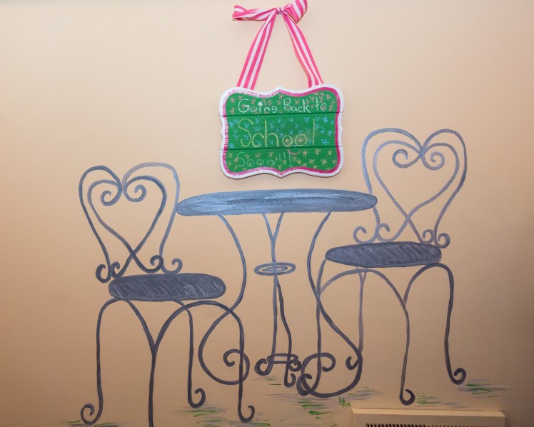 Leah and I had fun brainstorming her design ideas and colors for her new room. It was fun custom painting walls and repurpose accessories for use and to meet project budget. I hope Leah, her brother Wynn, and her friends can enjoy baking for years to come.