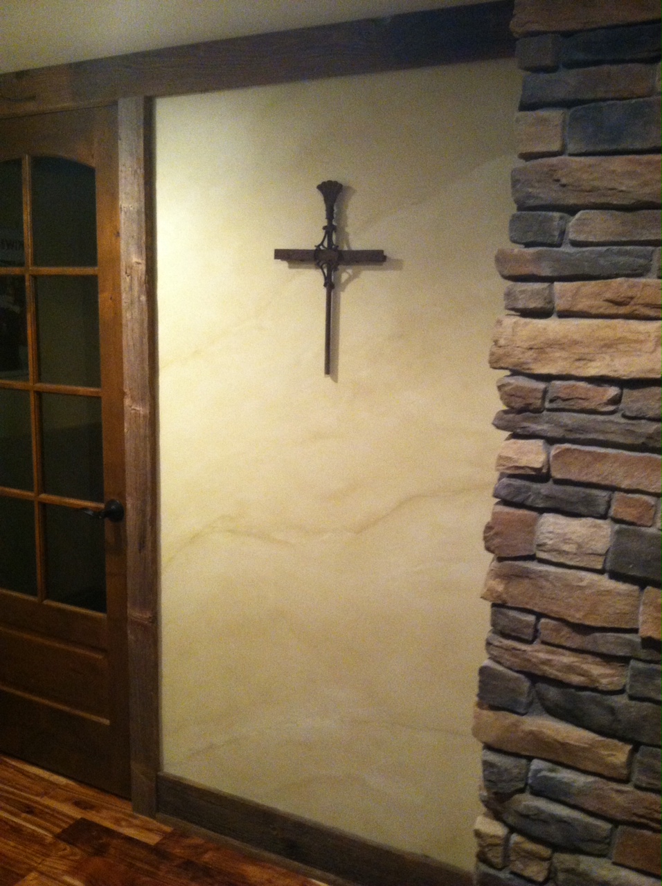 Old world fresco finish for Beth’s entertainment room in her new home.