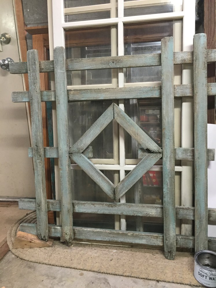 This vintage piece of fence was fun to repurpose and turn into unique artwork for Wendy. Thank you for trusting me to be creative by adding layers of paint and dry brushing the colors to tie into your color scheme. Eventually this piece will hang onto wall and display a special family photograph. I will update this site with final photos. #repurposedfence,#chalkpaintedwoodfence