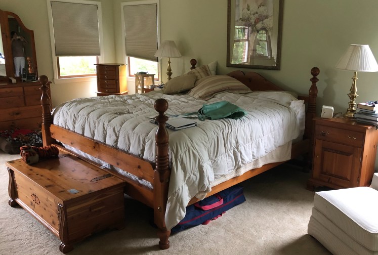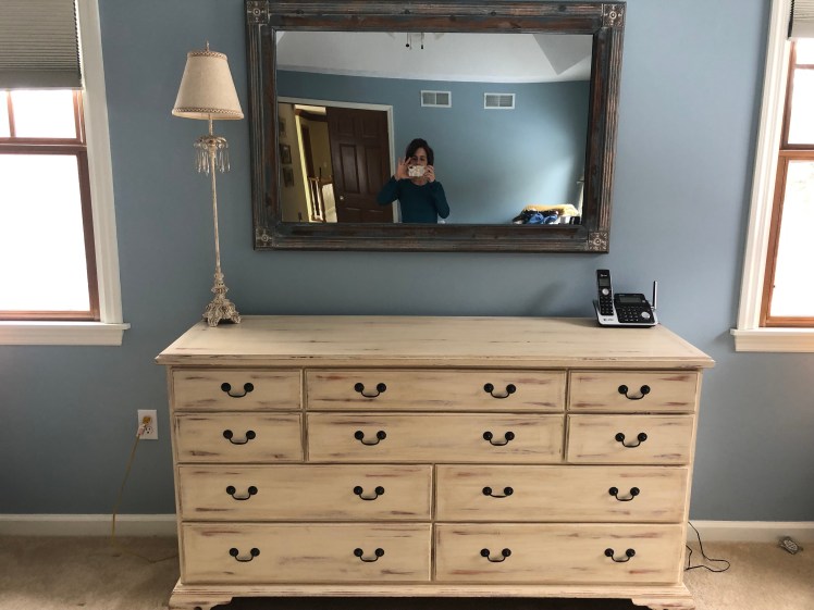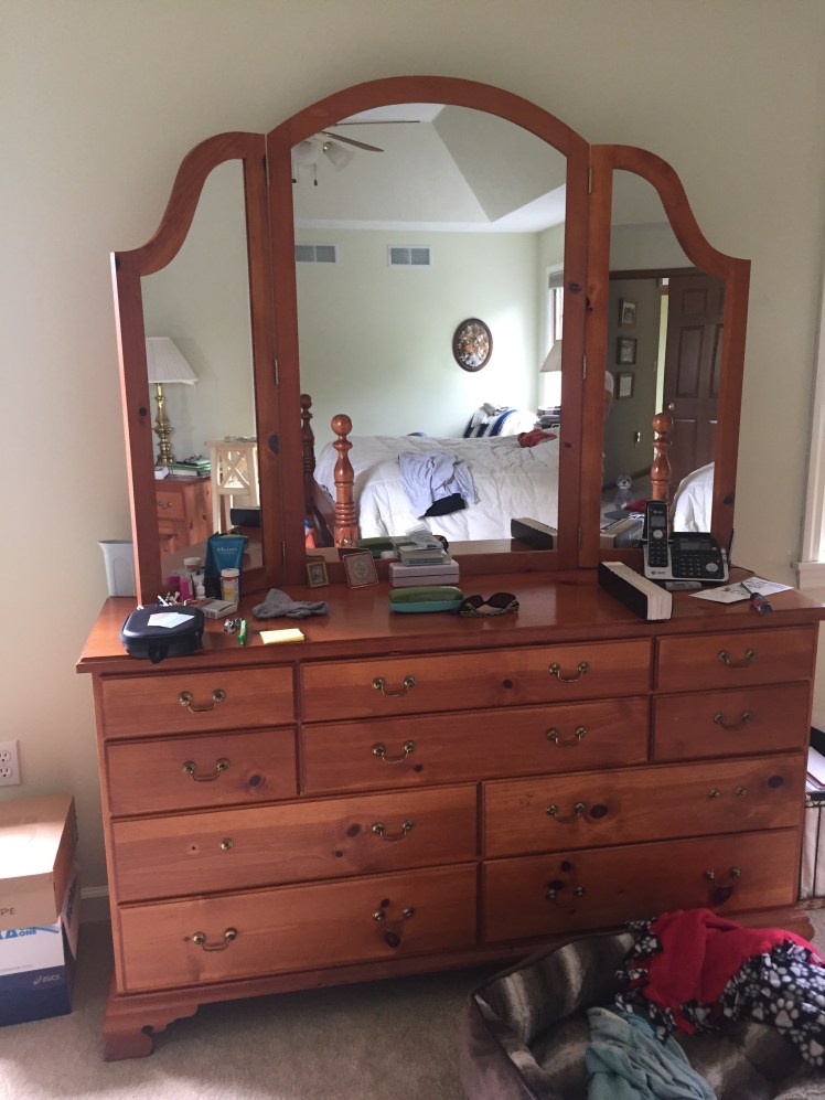This pine bedroom set was still in beautiful condition and had special meaning to my client. She asked me if I could create a custom finish to coordinate with her new wall colors and design ideas for her master bedroom. This project was completed a while back but wanted to share completed room photos.