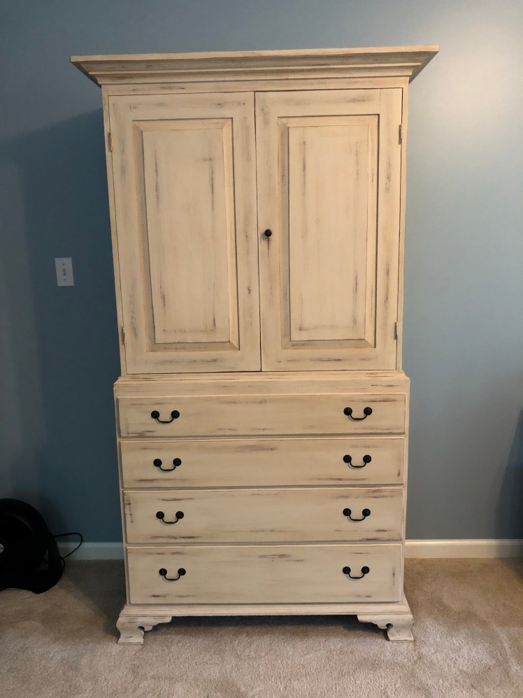 I enjoyed creating a custom/distressed finish on these pieces. They each have personality (like my client) and are being enjoyed in her home. Here are some before/after pictures of the process and her project.