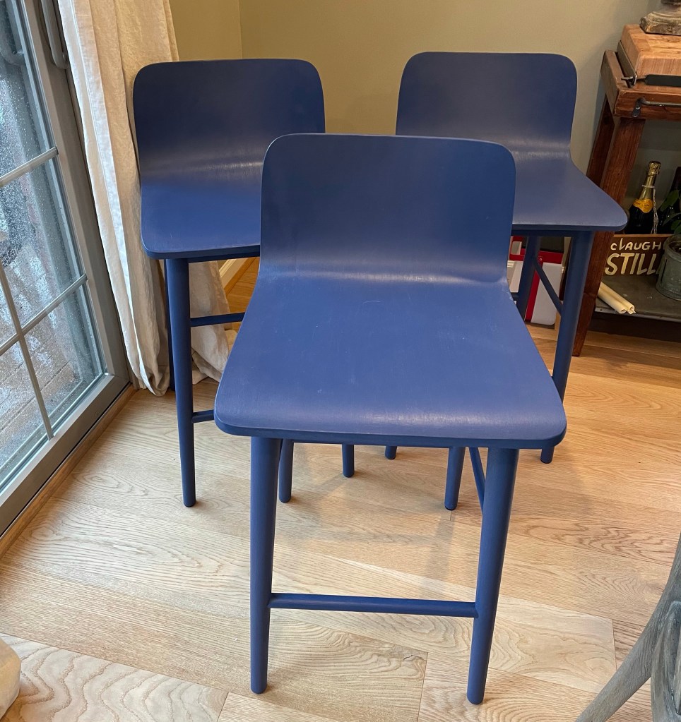 The Anthropology bar stools, several years old, just needed new pop of color and Annie Sloan’s Napoleonic won top choice!
