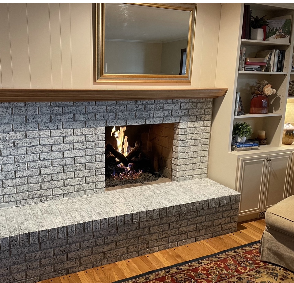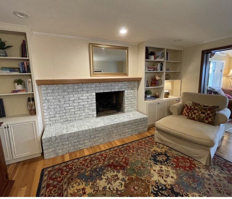 Such a fun makeover on this older fireplace brick for my client’s family room. Each fireplace turns out differently and is custom due to brick itself and wash colors. Bookcases and walls were painted ahead and we coordinated a creamy lighter paint color which truly opened up the space.