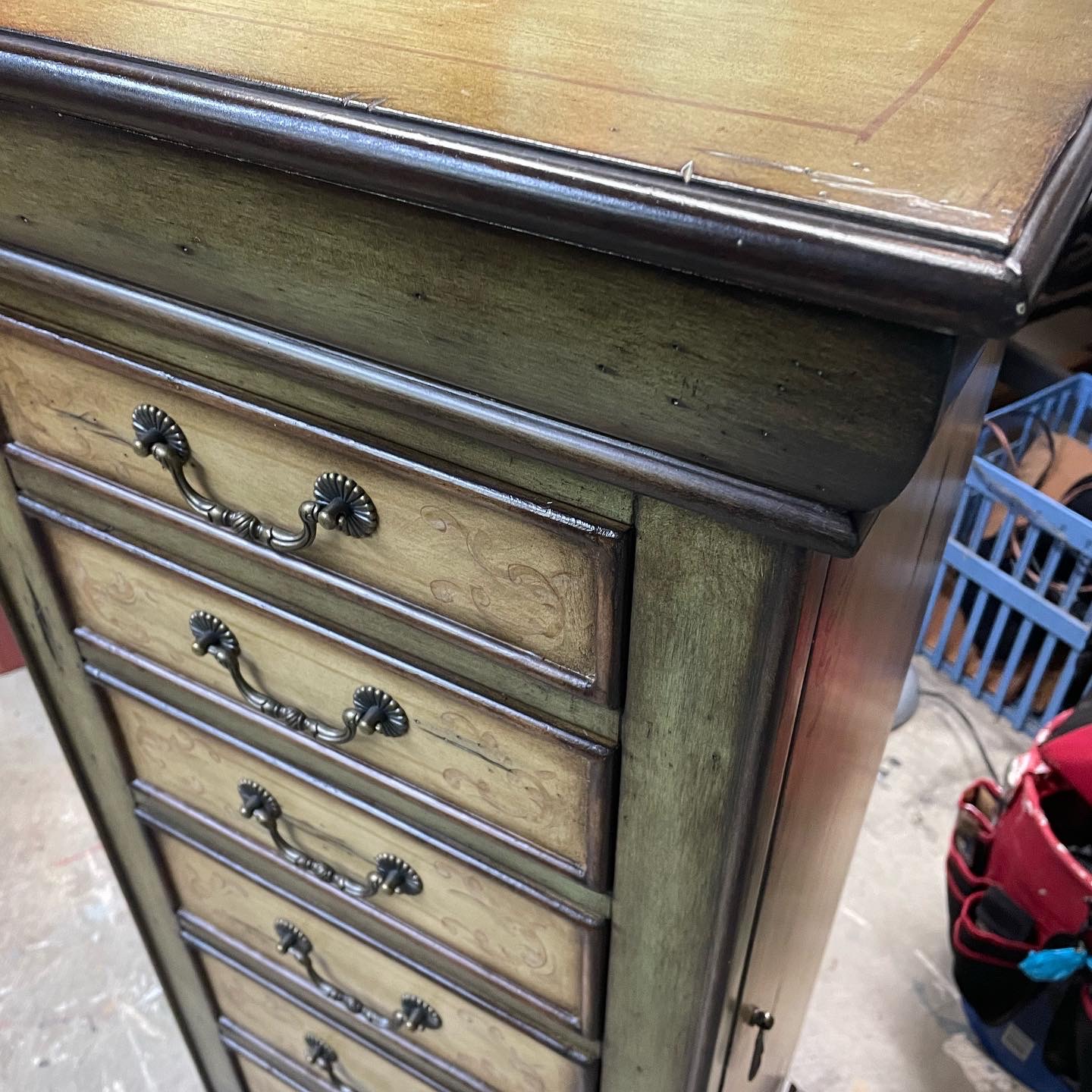 New master bedroom design/renovation project inspired my client to update and asked me to custom paint this special jewelry box to coordinate with new colors!
