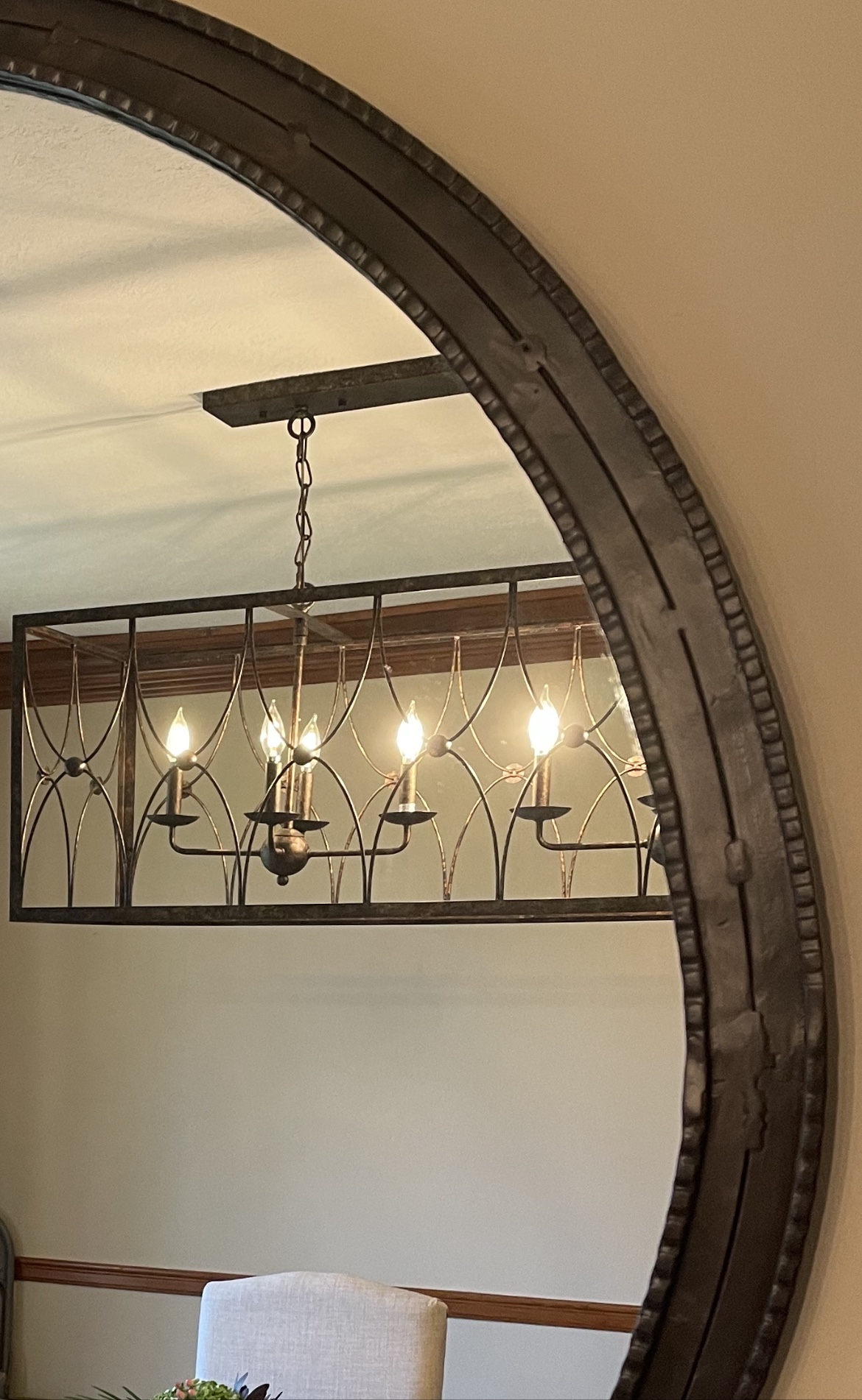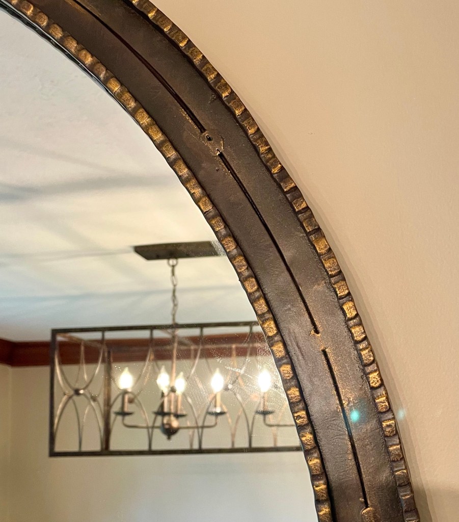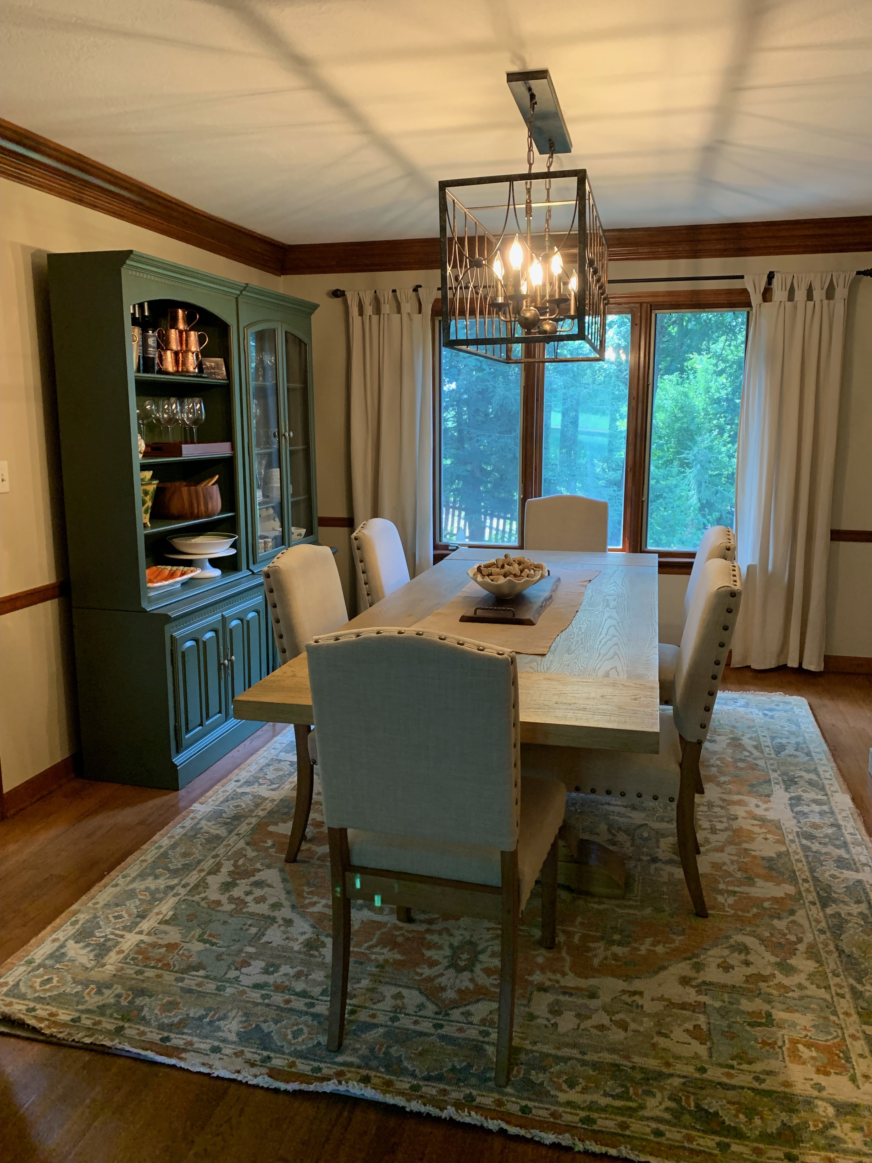 Loved working with Fusion’s stunning Bayberry on this dining room storage/hutch (passed on from a special uncle) and creating a warm gold finish on the hardware & beautiful Arhaus mirror. Metallic finishes now coordinate with updated lighting fixture and accentuate the cool textures on the mirror! Bayberry coordinates perfectly with the area rug colors and new design scheme!
