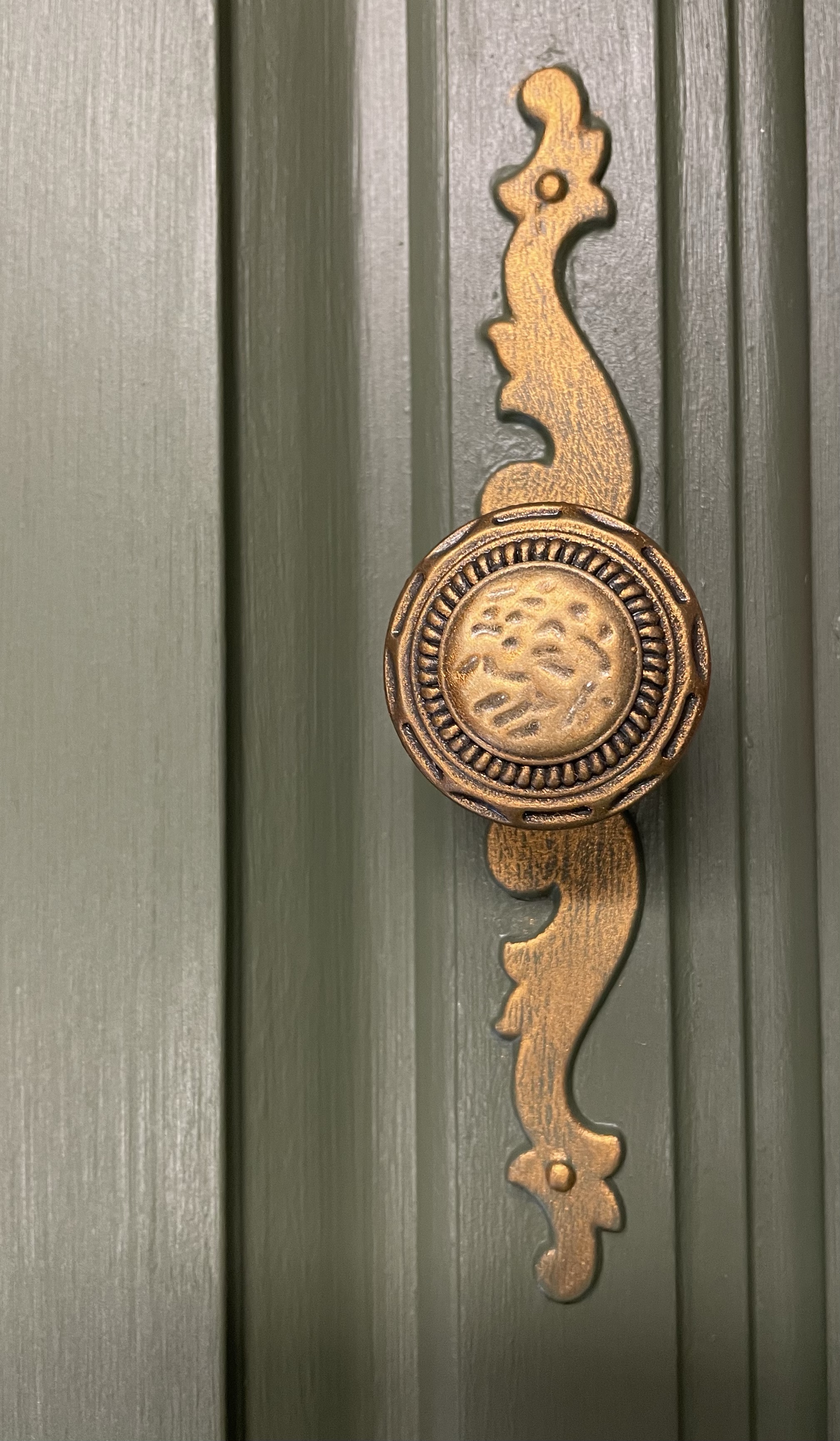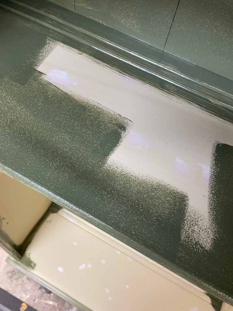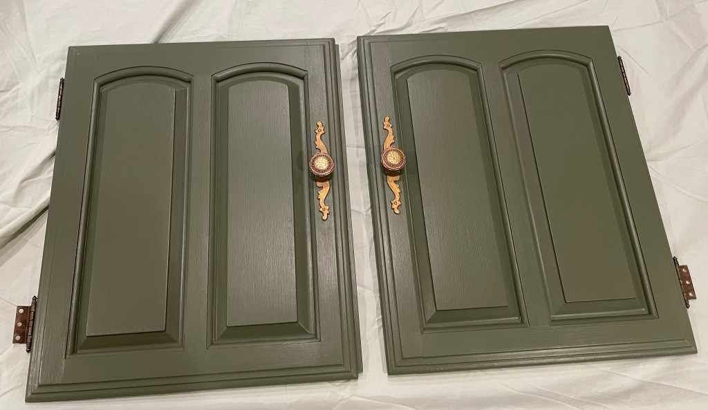 Bayberry and custom warm gold for the win on this large dining room storage piece that I painted several months ago!