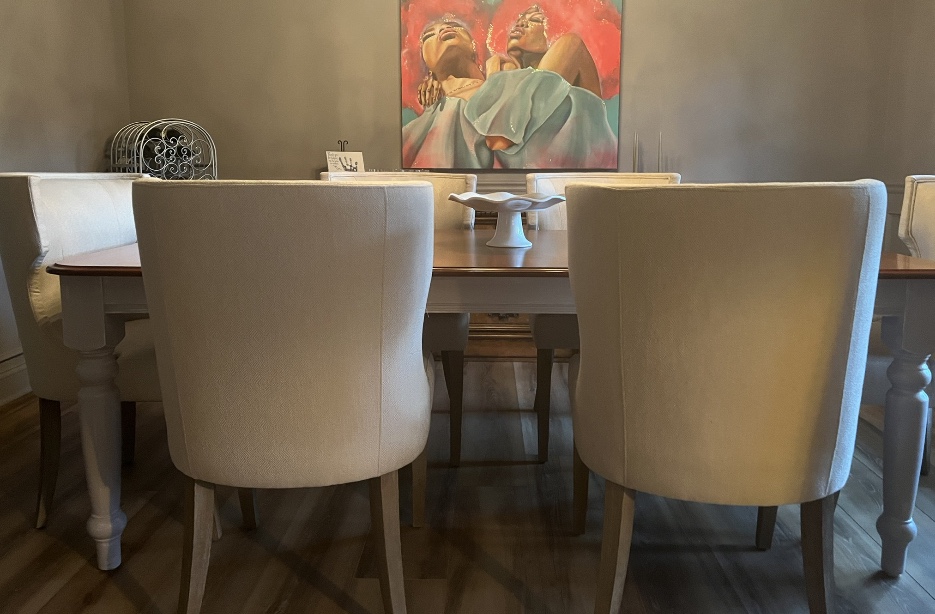 The beautiful artwork in the dining room is from local freelance artist Sarah Jameson. She is quite a talent and her amazing artwork can be found online at sarahjamesonart.com!