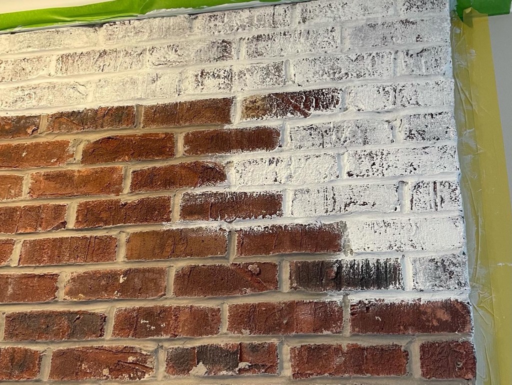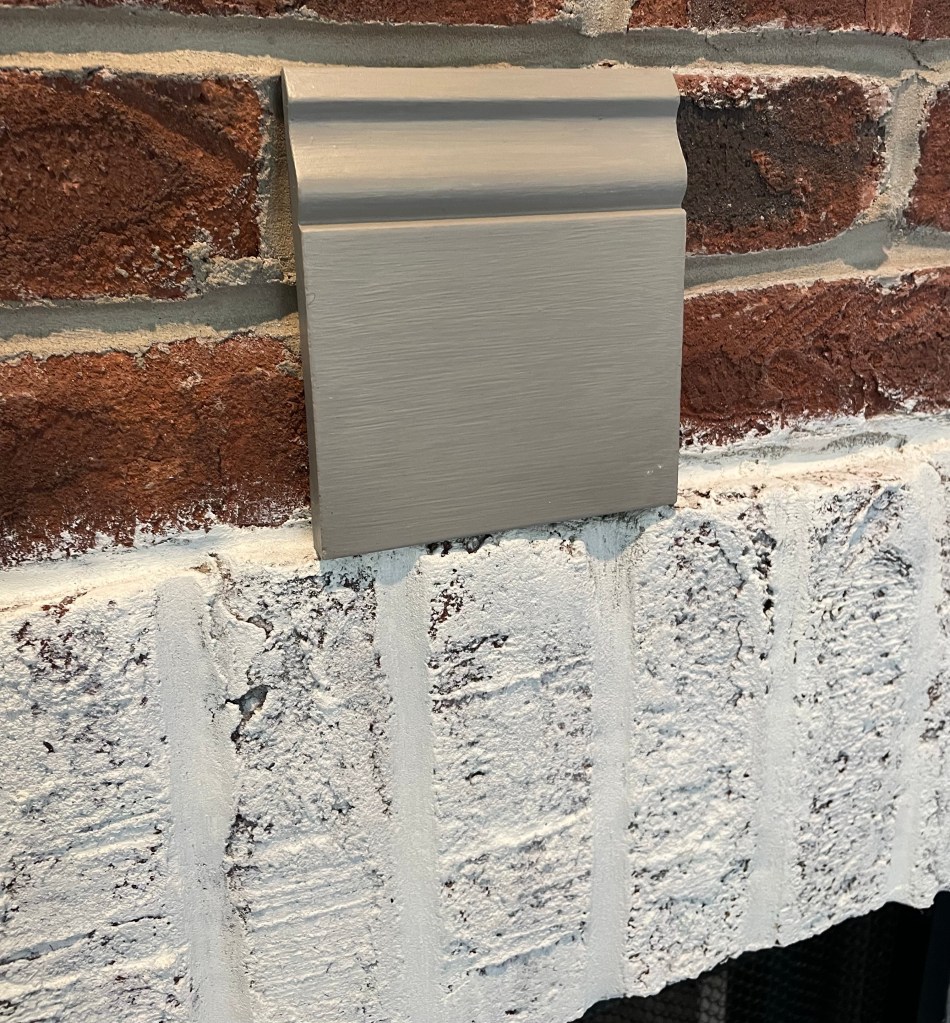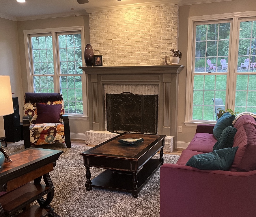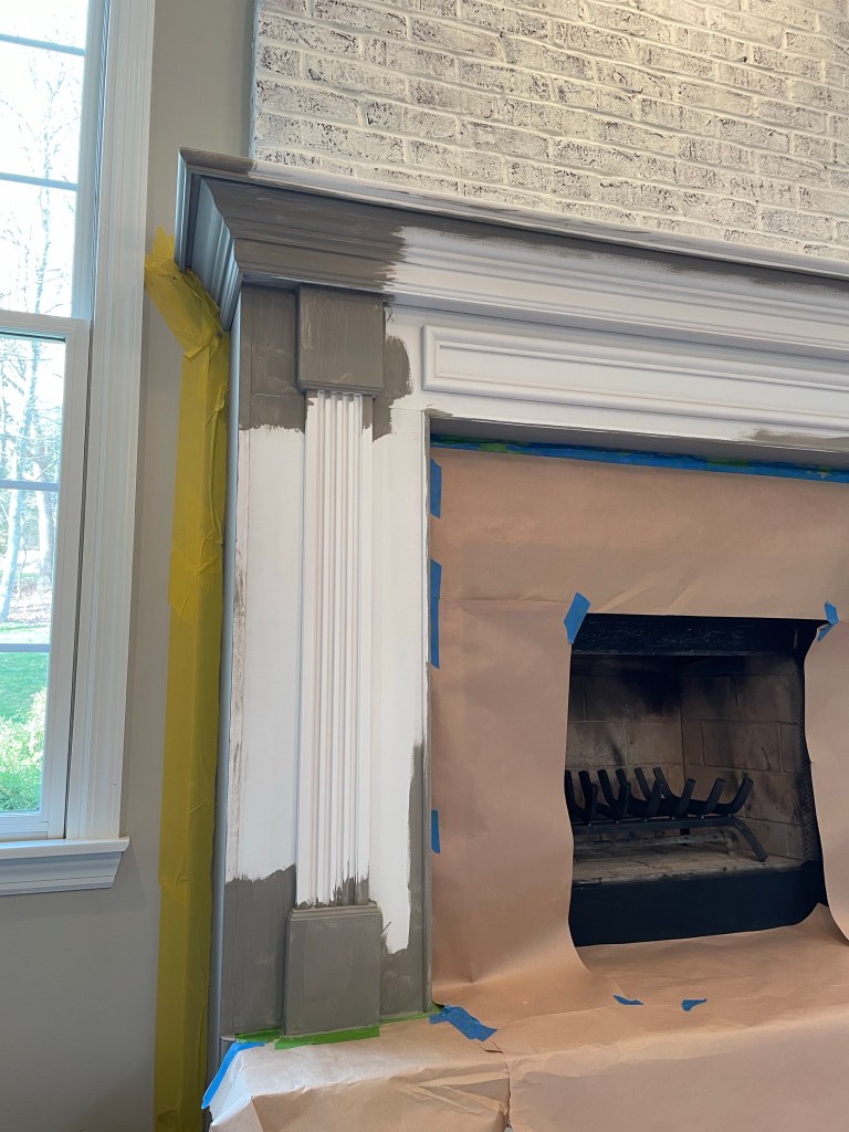 Created a custom white brick finish on this older fireplace and warmed up new custom mantel/surround with French Linen. This truly completed this beautiful family room design and renovation.