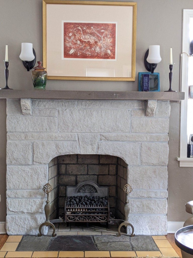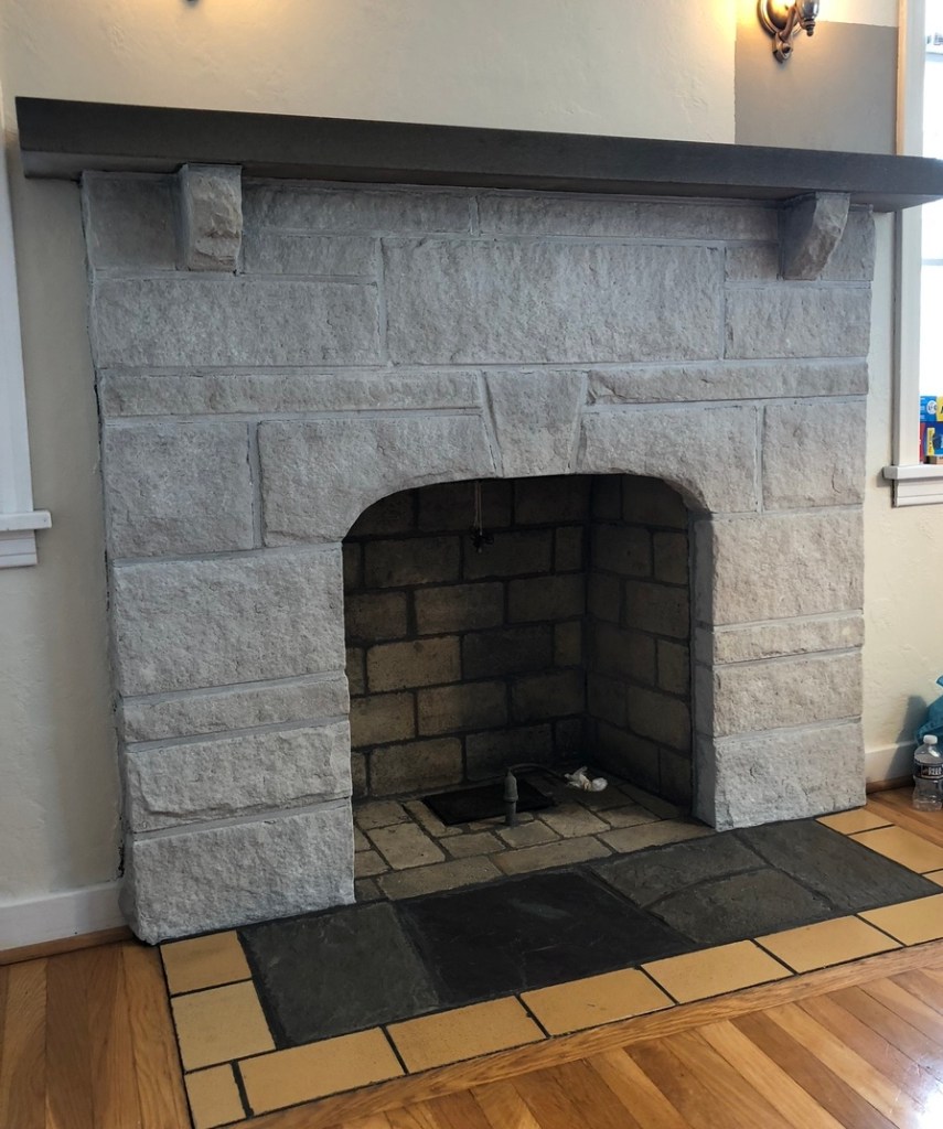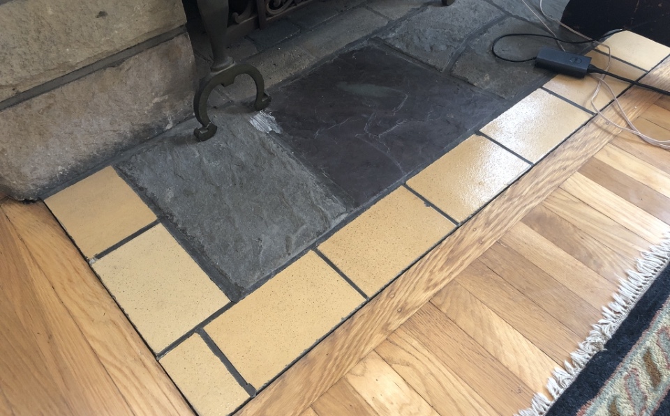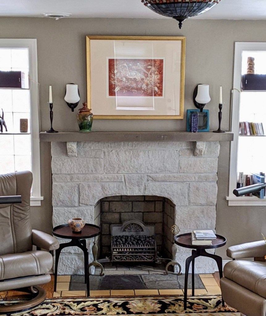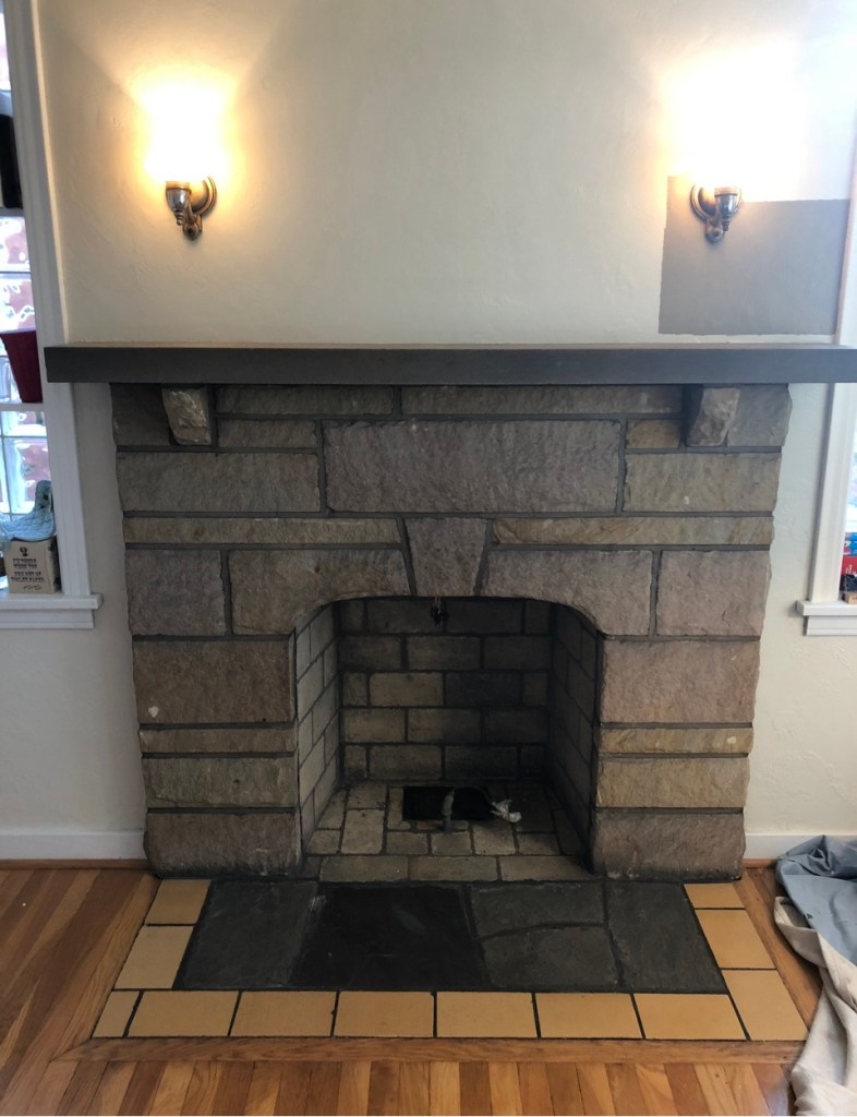 New wall color, cleaning up the floor tile, and adding a nice soft whitewash on the old stone brought this living room fireplace back to life! Also touched up floor tiles from wear over the years.