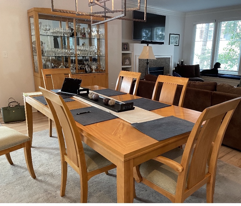 Older but beautiful maple dining room furniture moved to a new home for retirement years.