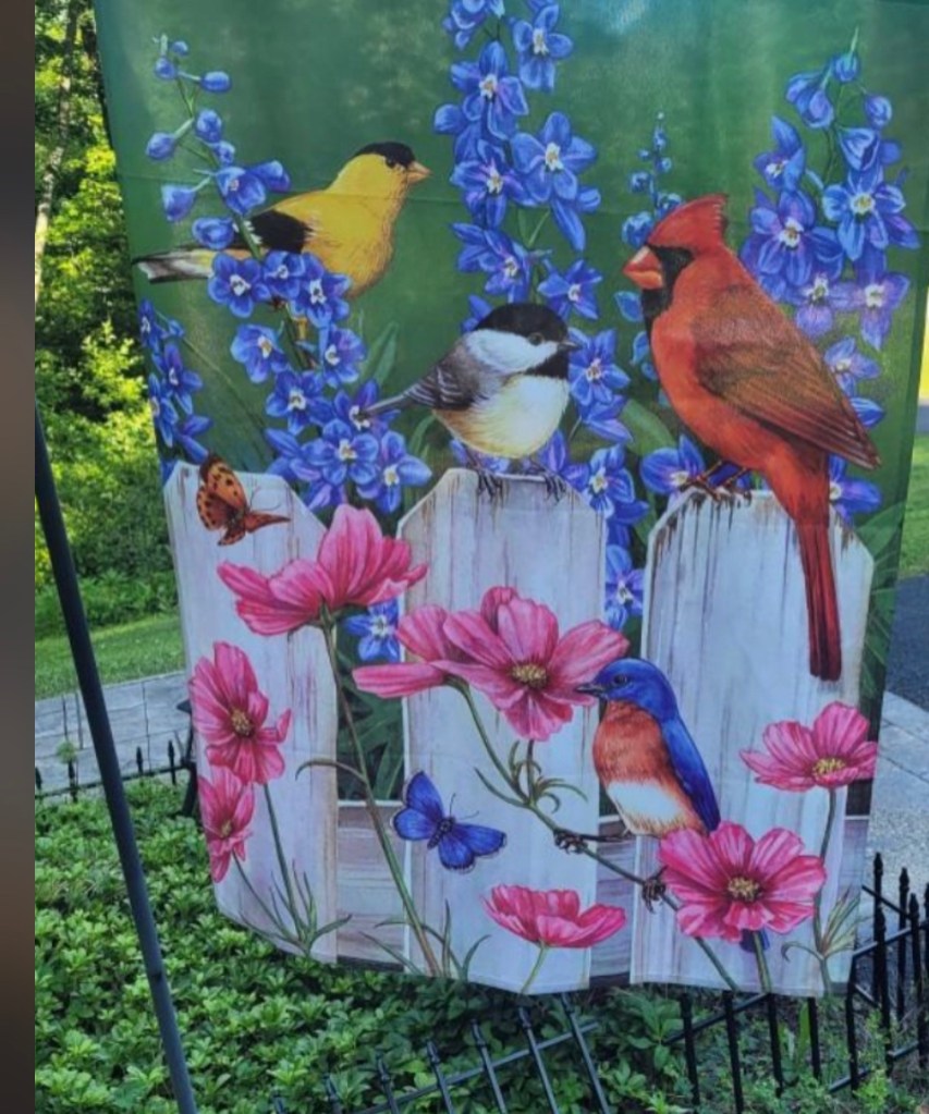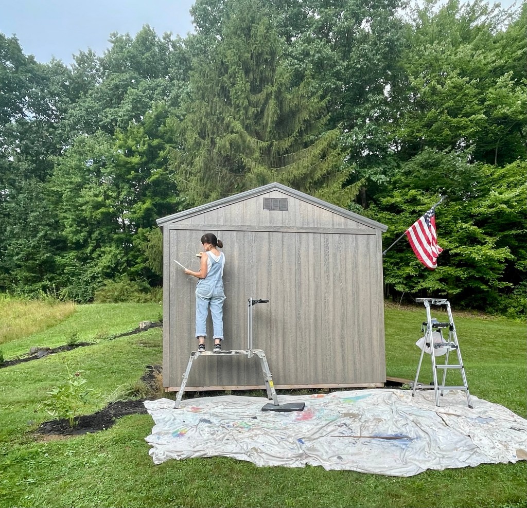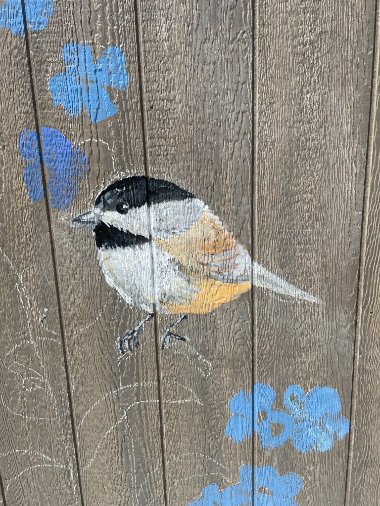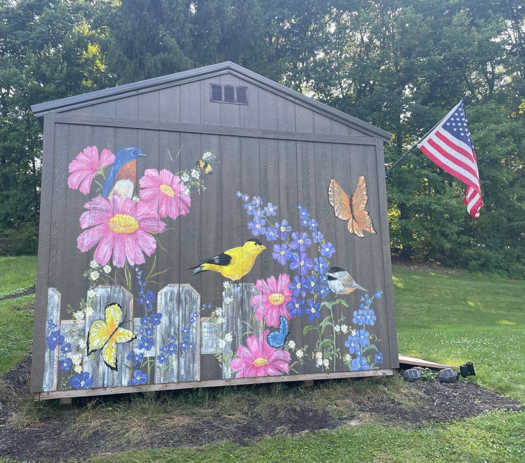 It was fun to team up on this project with my very talented artist/friend Michele! We created a mural on this shed similar to our clients’ garden flag and her favorite birds, butterflies, and flowers. Her happiness in the results made it all worth while on a very hot July summer day!