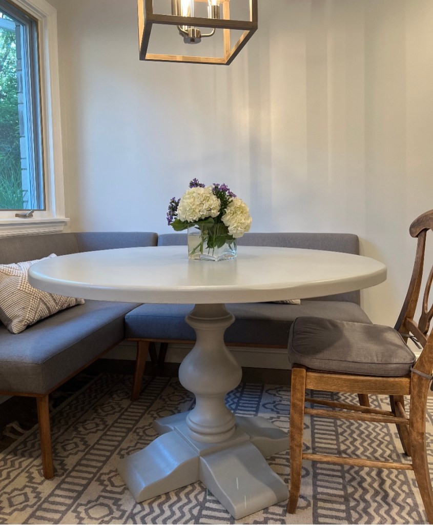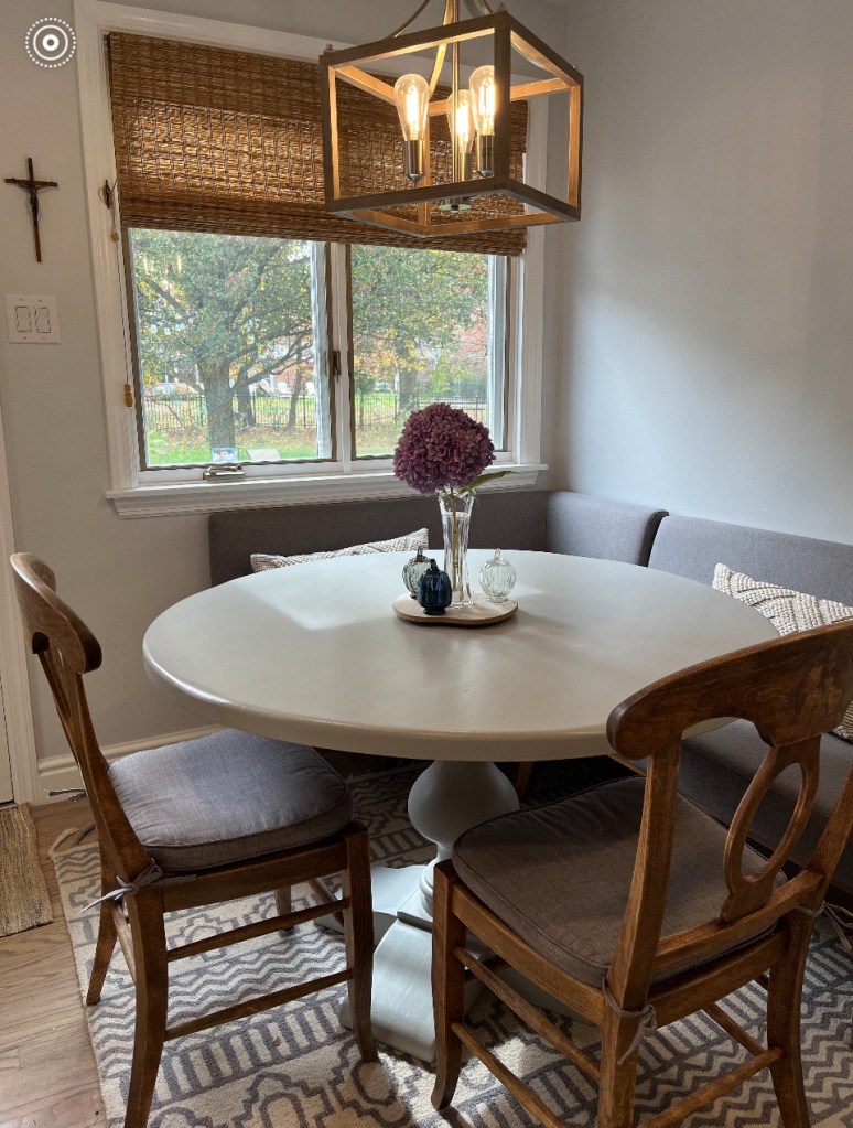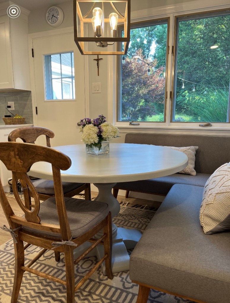 Here are before/after photos and thank you Mary for the opportunity to be creative in your home. Enjoy your table and gorgeous kitchen with your fun family for years to come! Cheers!
