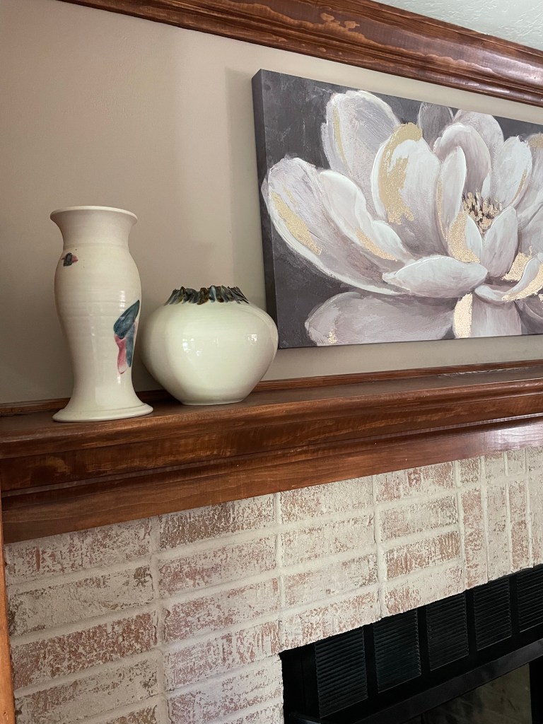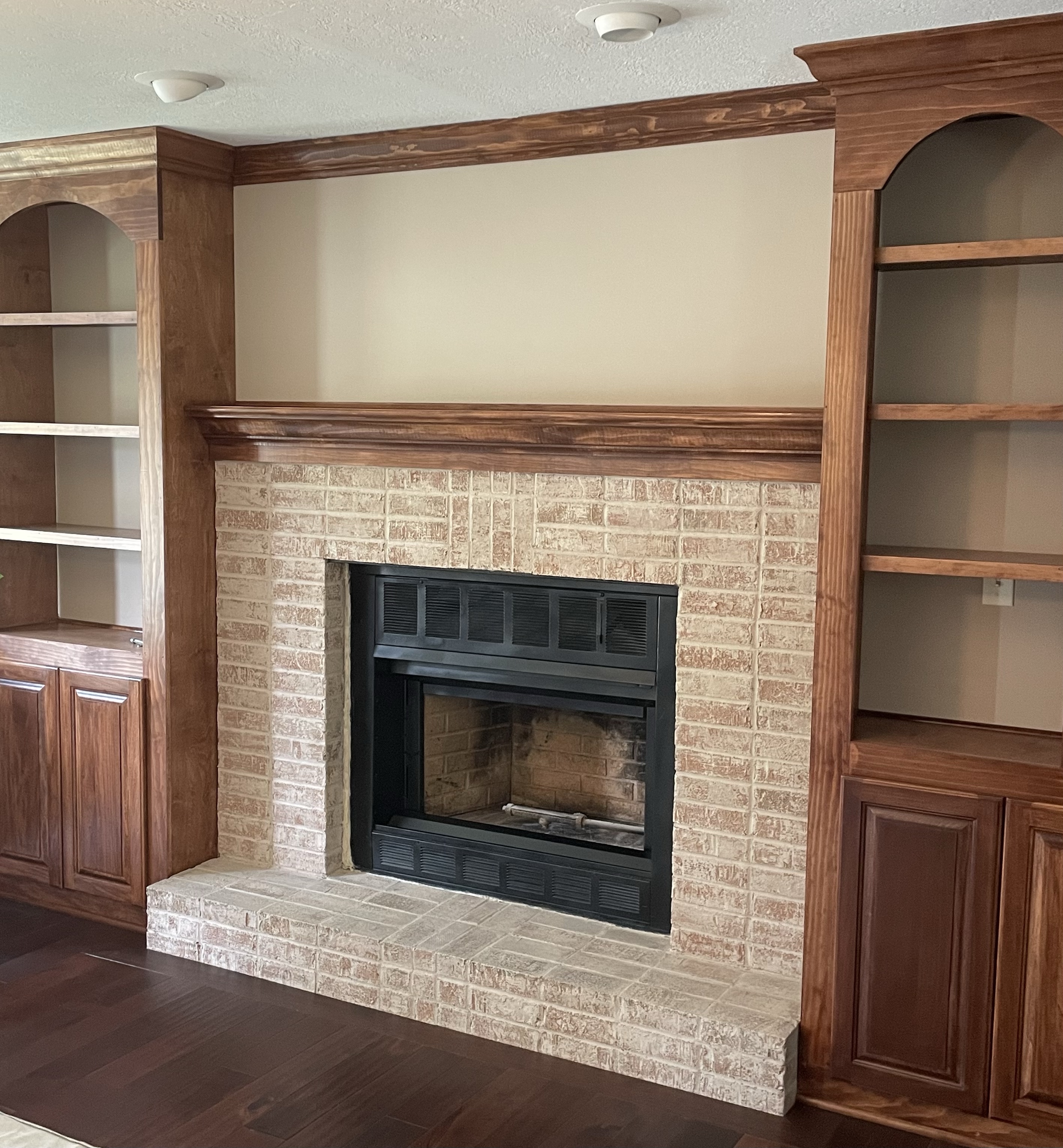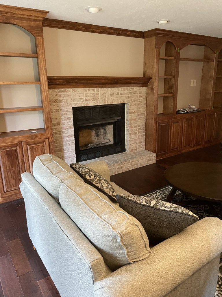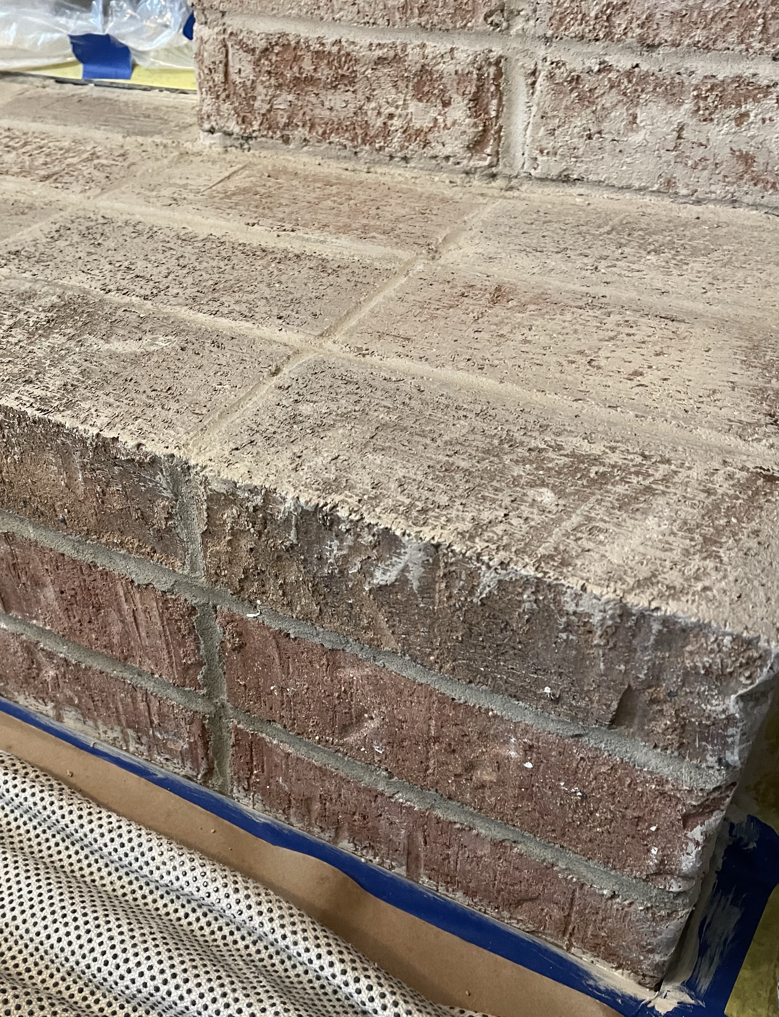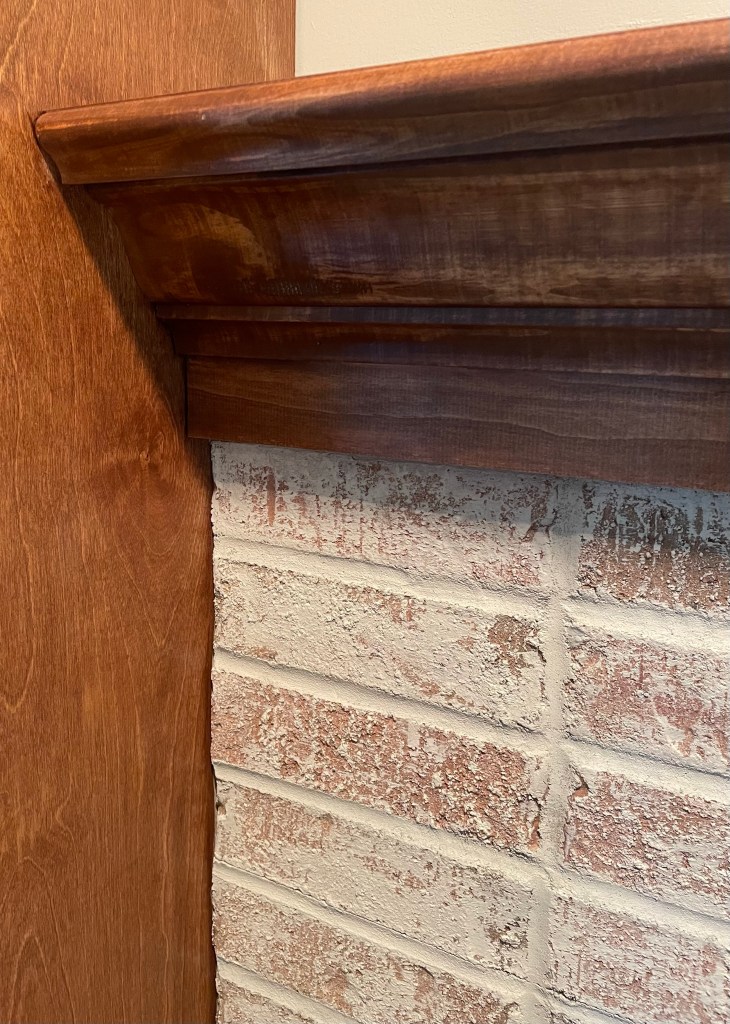 Early in the fall my neighbor/friend was doing final renovations in her home and family room. This older fireplace brick needed cleaning and a soft custom whitewashed paint finish.