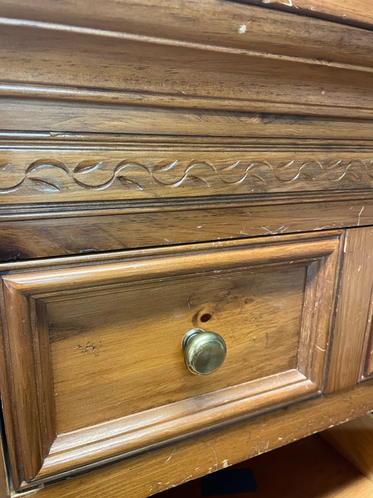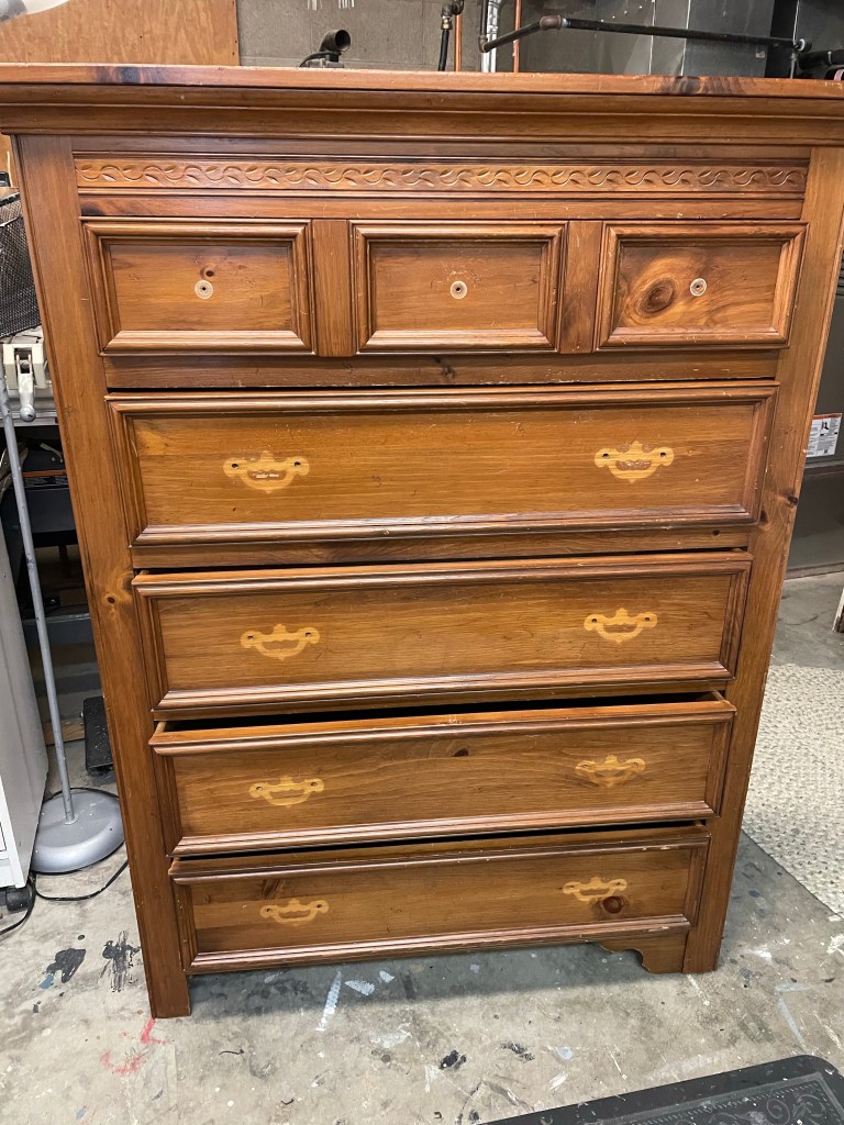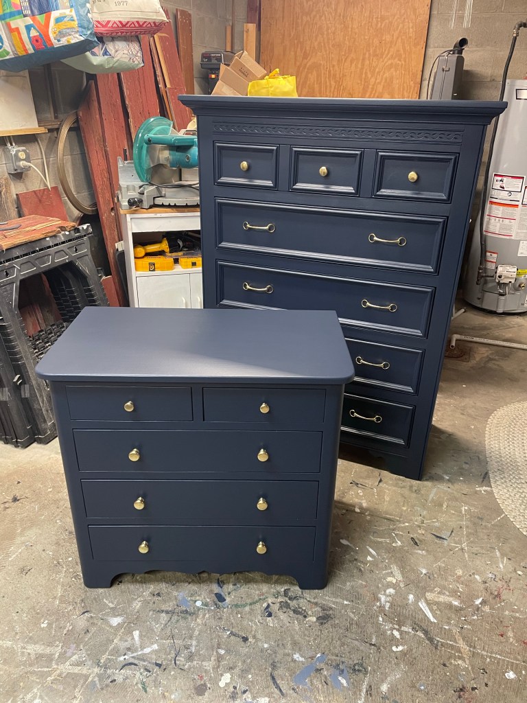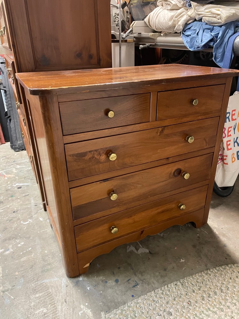 There were some repairs after cleaning and sanding to smooth both tops. One left bottom wood trim detail piece was missing, which may have been chewed by a sweet young puppy, but not mentioning any names 🙂 and needed made to match the right bottom piece on the chest. My husband is very handy & precise working with wood and so thankful for his expertise making a match.