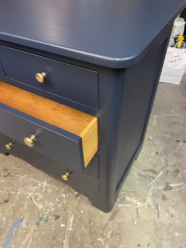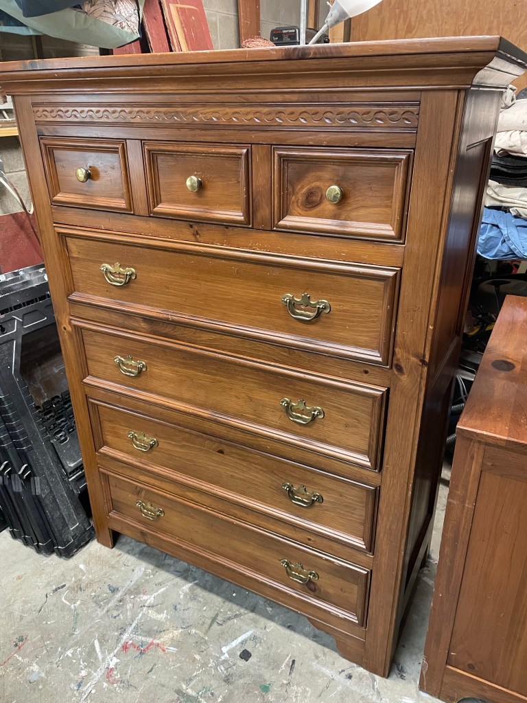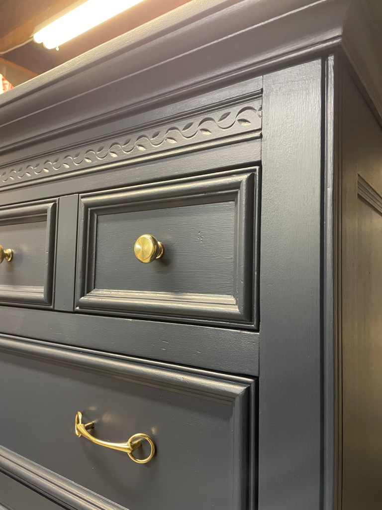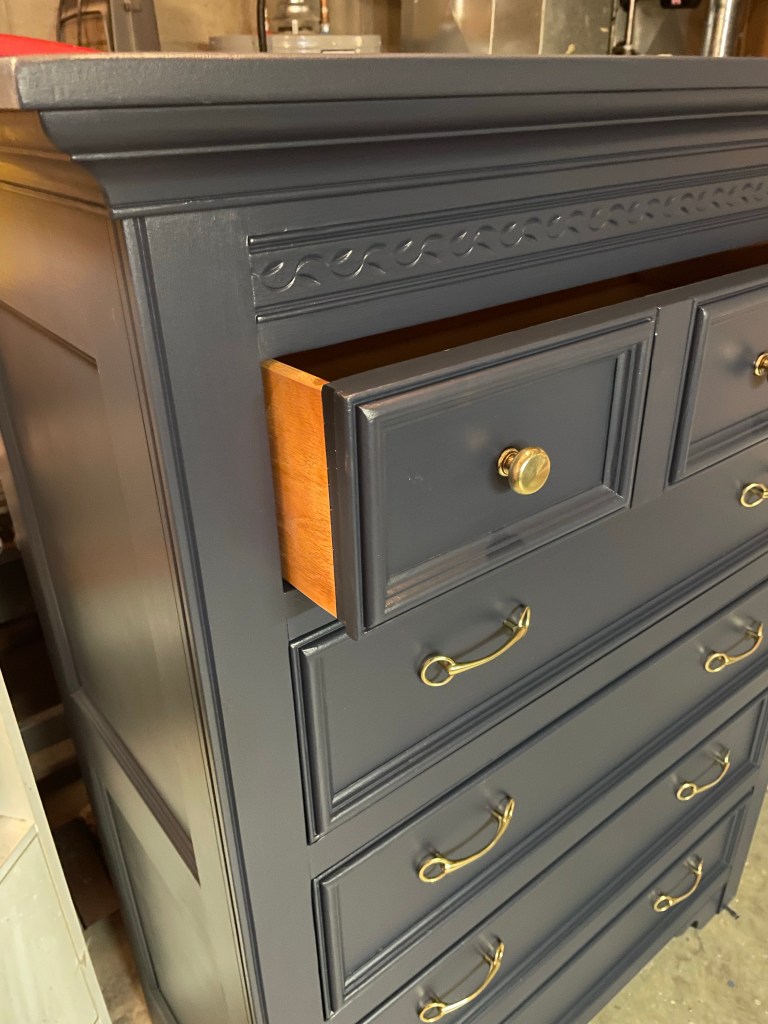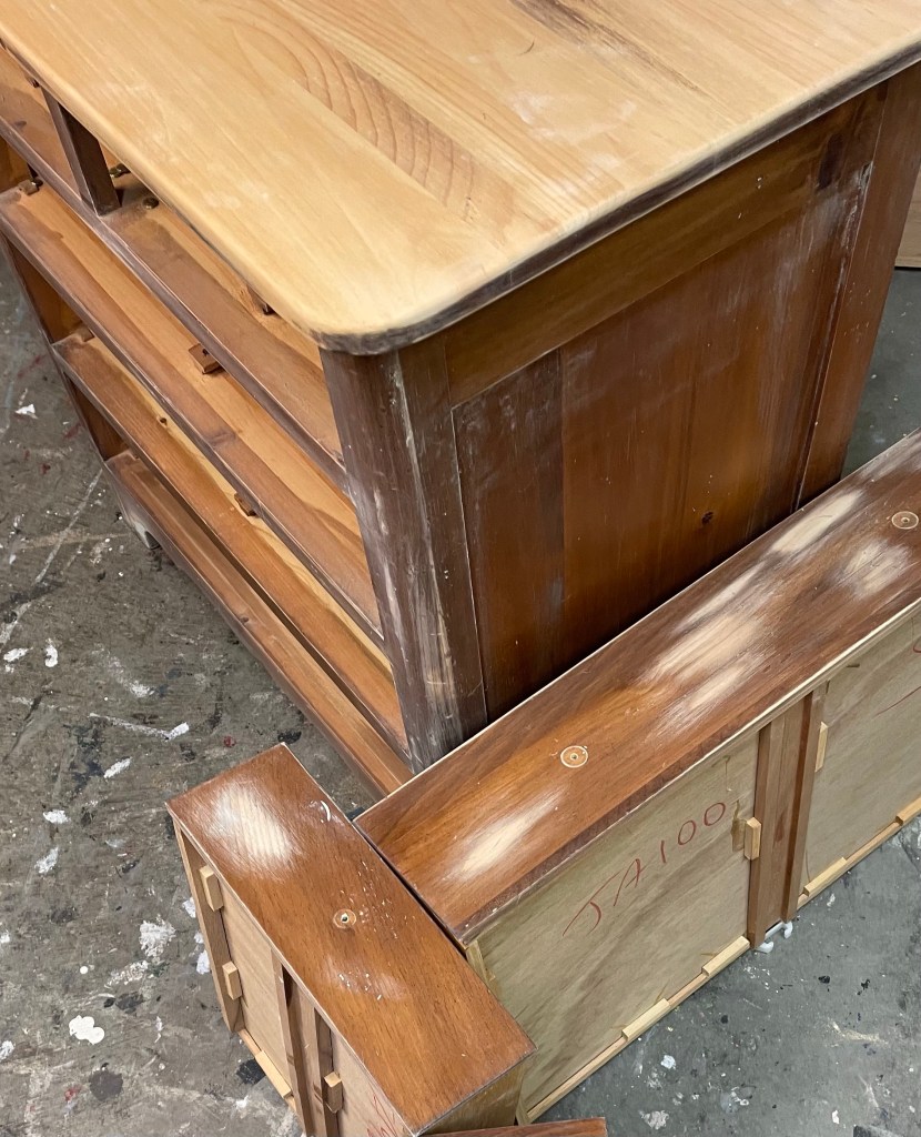 There were some repairs after cleaning and sanding to smooth both tops. One left bottom wood trim detail piece was missing, which may have been chewed by a sweet young puppy, but not mentioning any names 🙂 and needed made to match the right bottom piece on the chest. My husband is very handy & precise working with wood and so thankful for his expertise making a match.