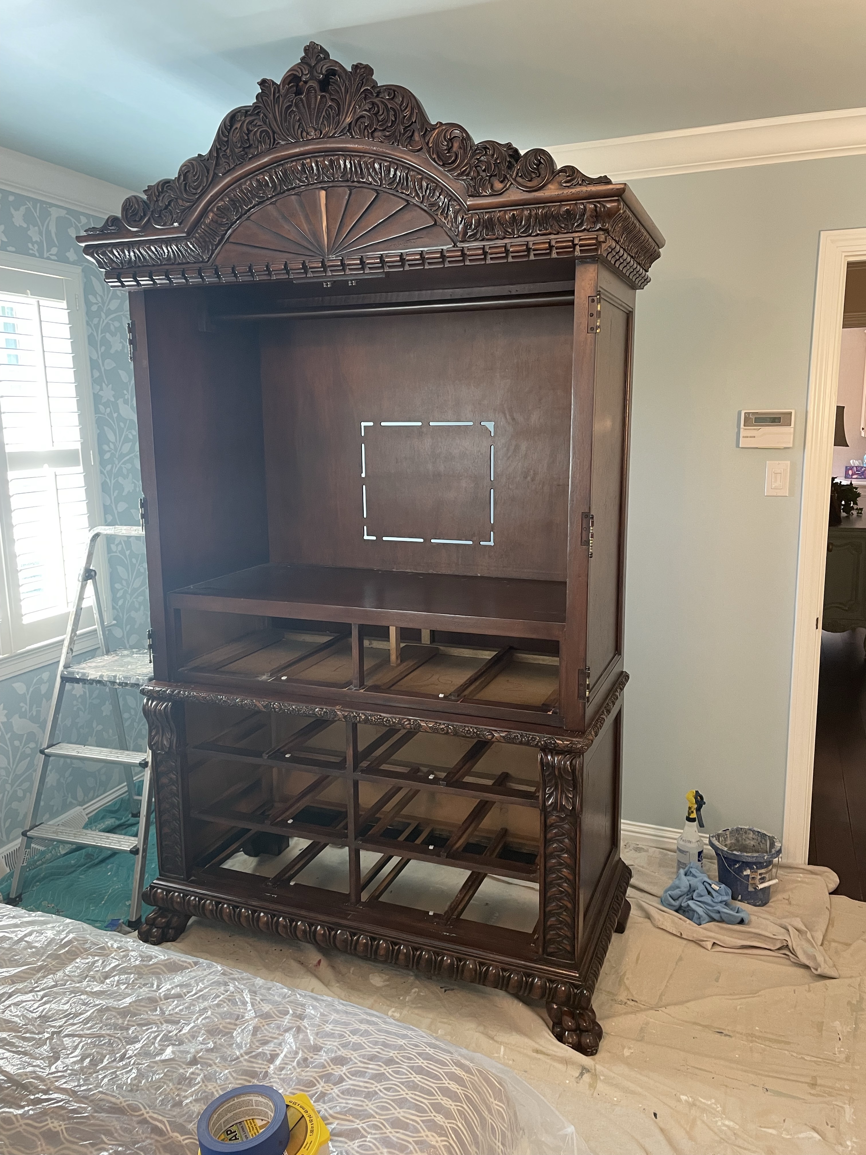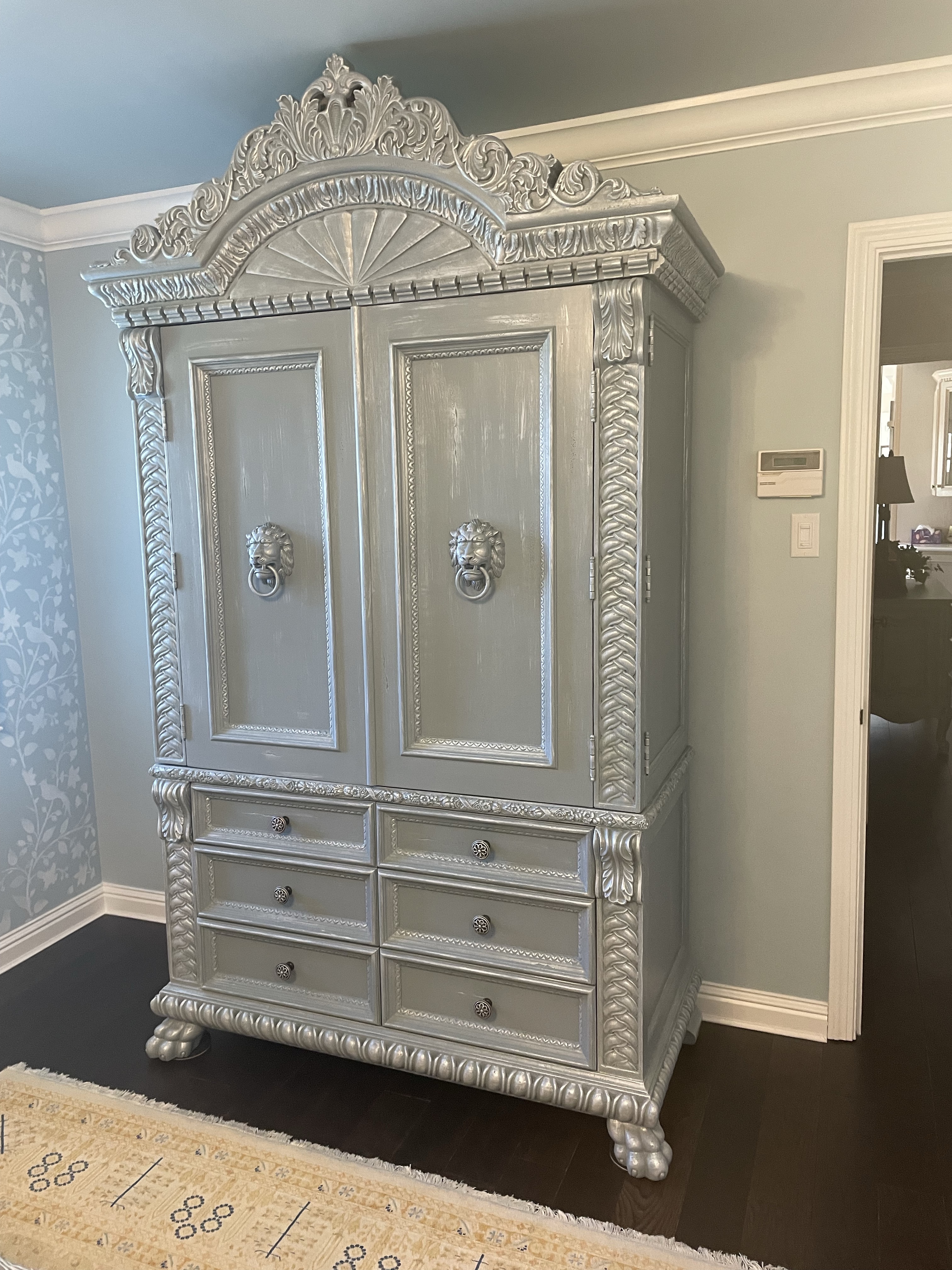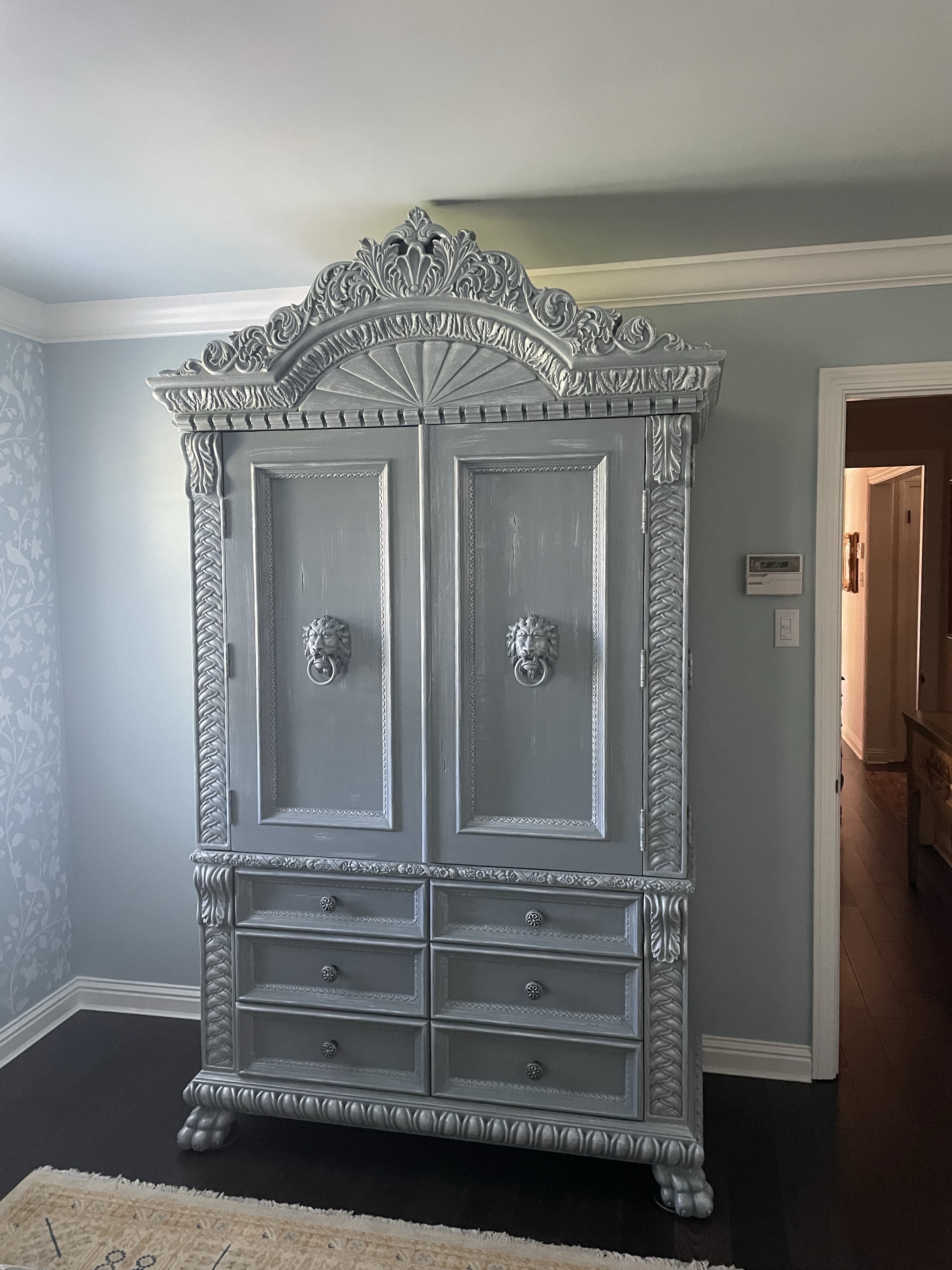 This eight foot high bedroom armoire needed an updated lighter color/finish to complete new room design!