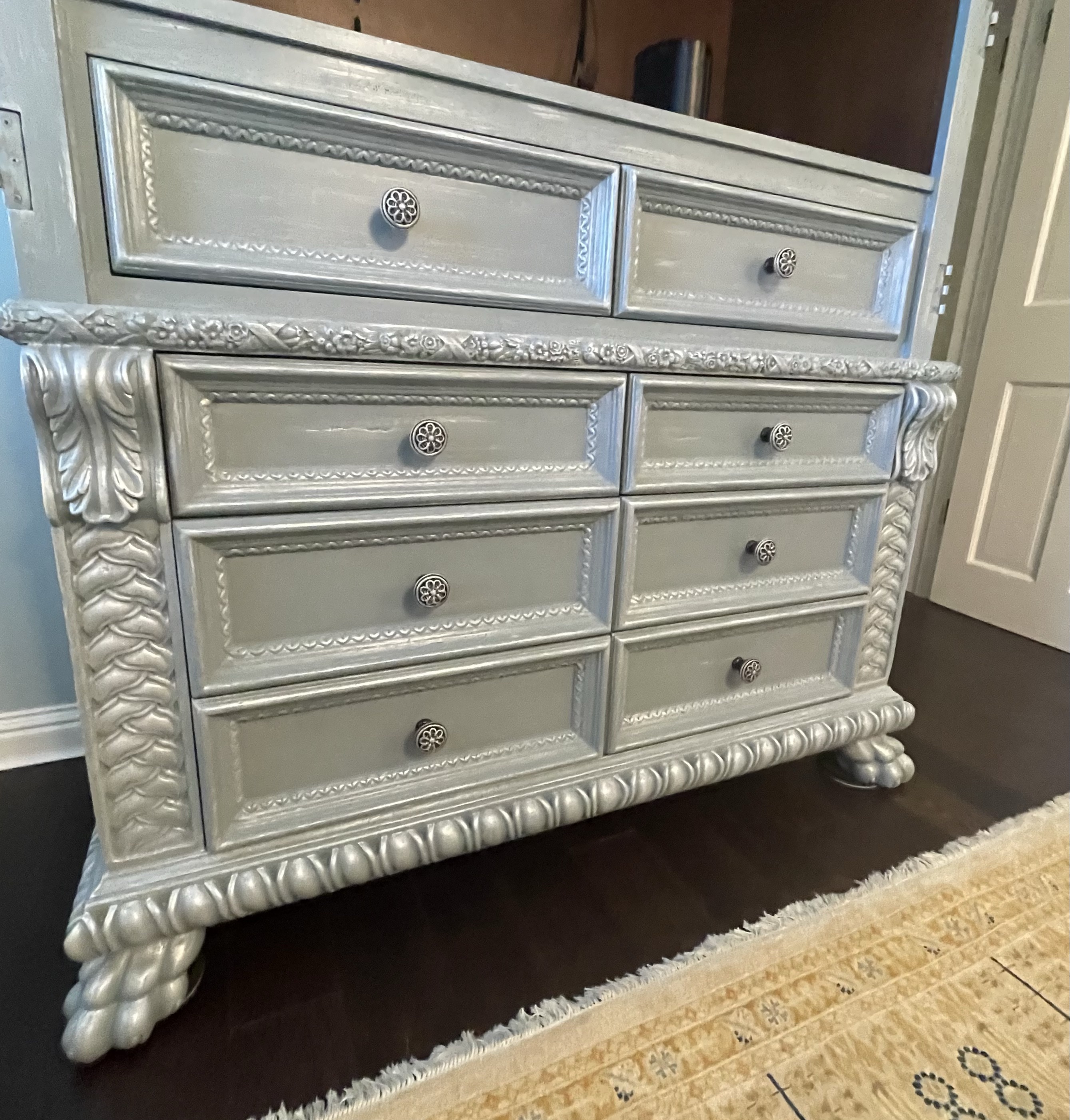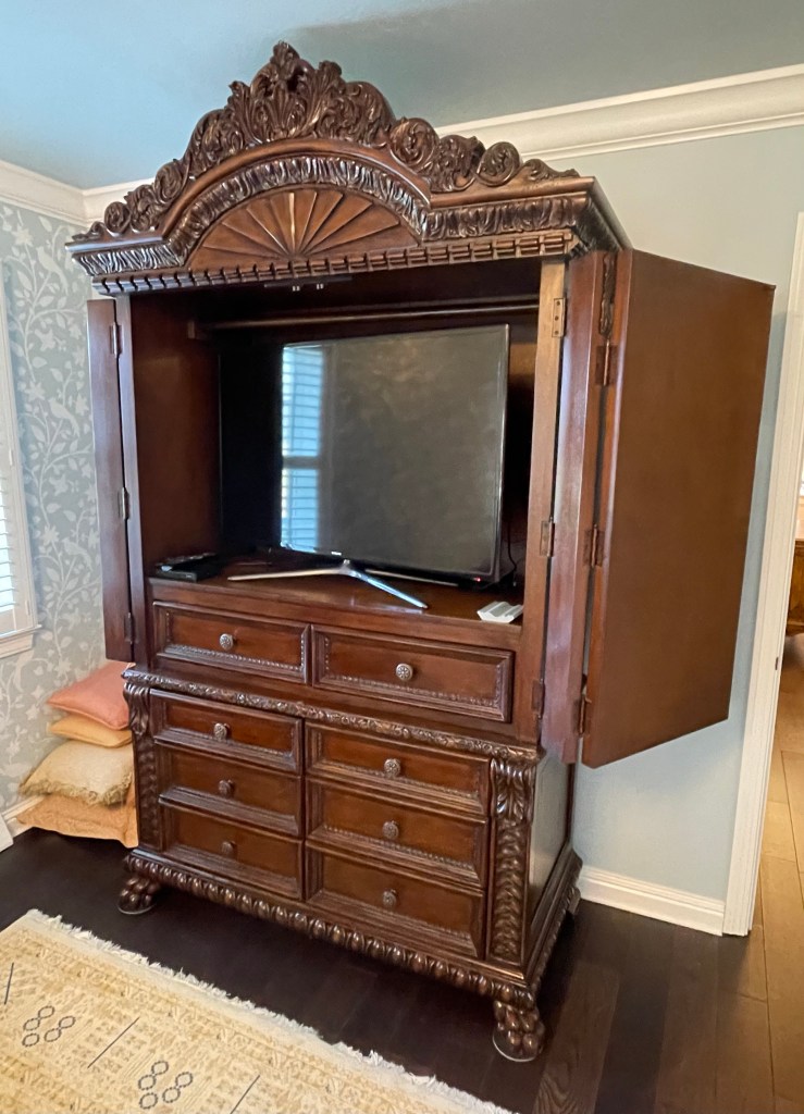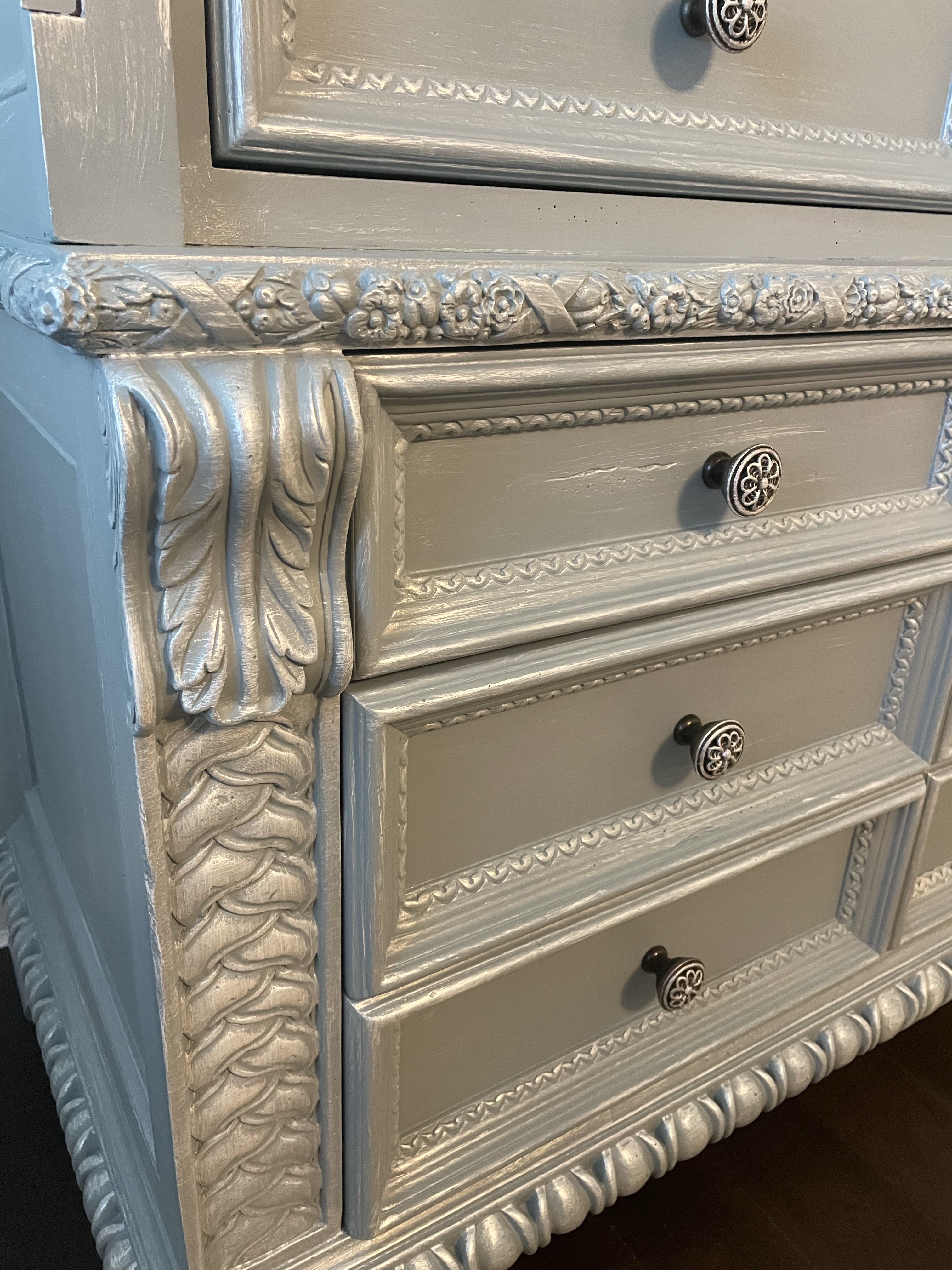 This eight foot high bedroom armoire needed an updated lighter color/finish to complete new room design!