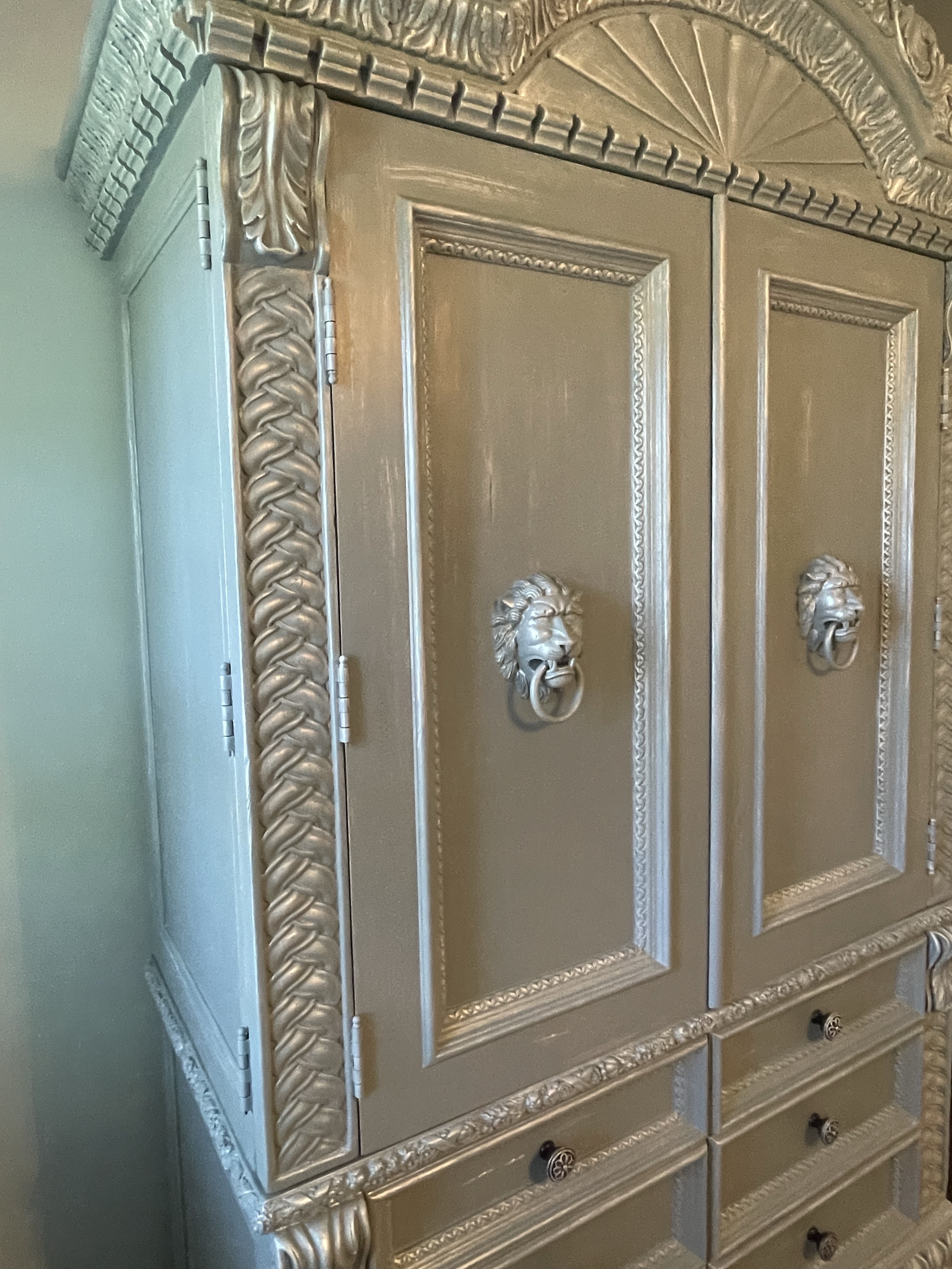 It was a monster as doors alone were huge and heavy. I worked on this over three weeks to let each phase dry before final installation!