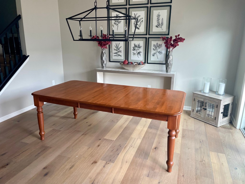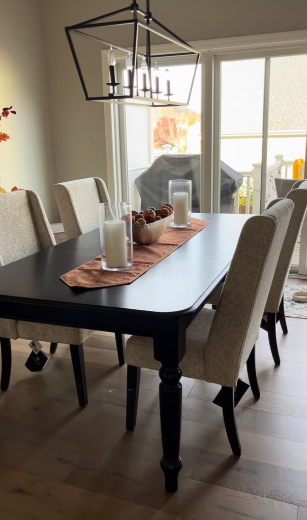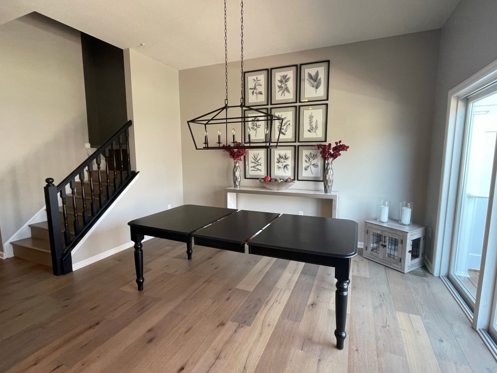 Keeping this older but beautiful wood table and adding new chairs was a great idea for this new dining room!