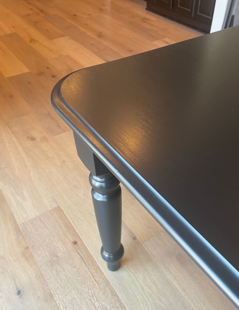 Coal black finish works well with Meg’s staircase railing, wall art, kitchen cabinets, and countertops!