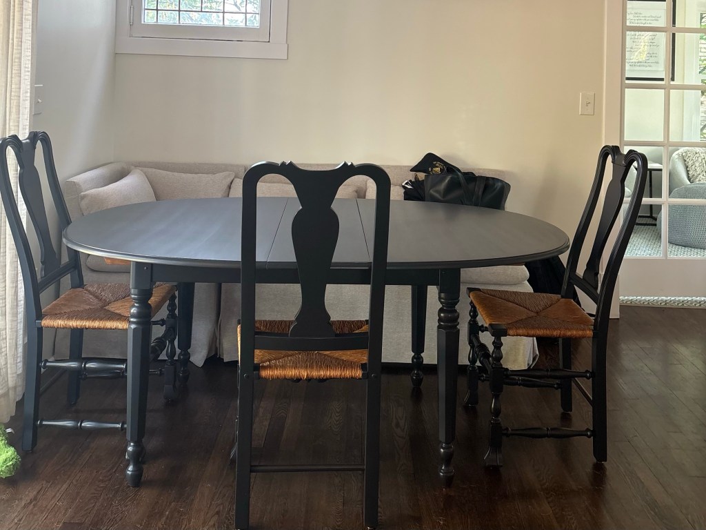 Loved helping dear friends to custom paint and update this older but beautiful dining table and 6 chairs. They had been used for many years with my client’s parents and now passed onto her son and daughter in law.