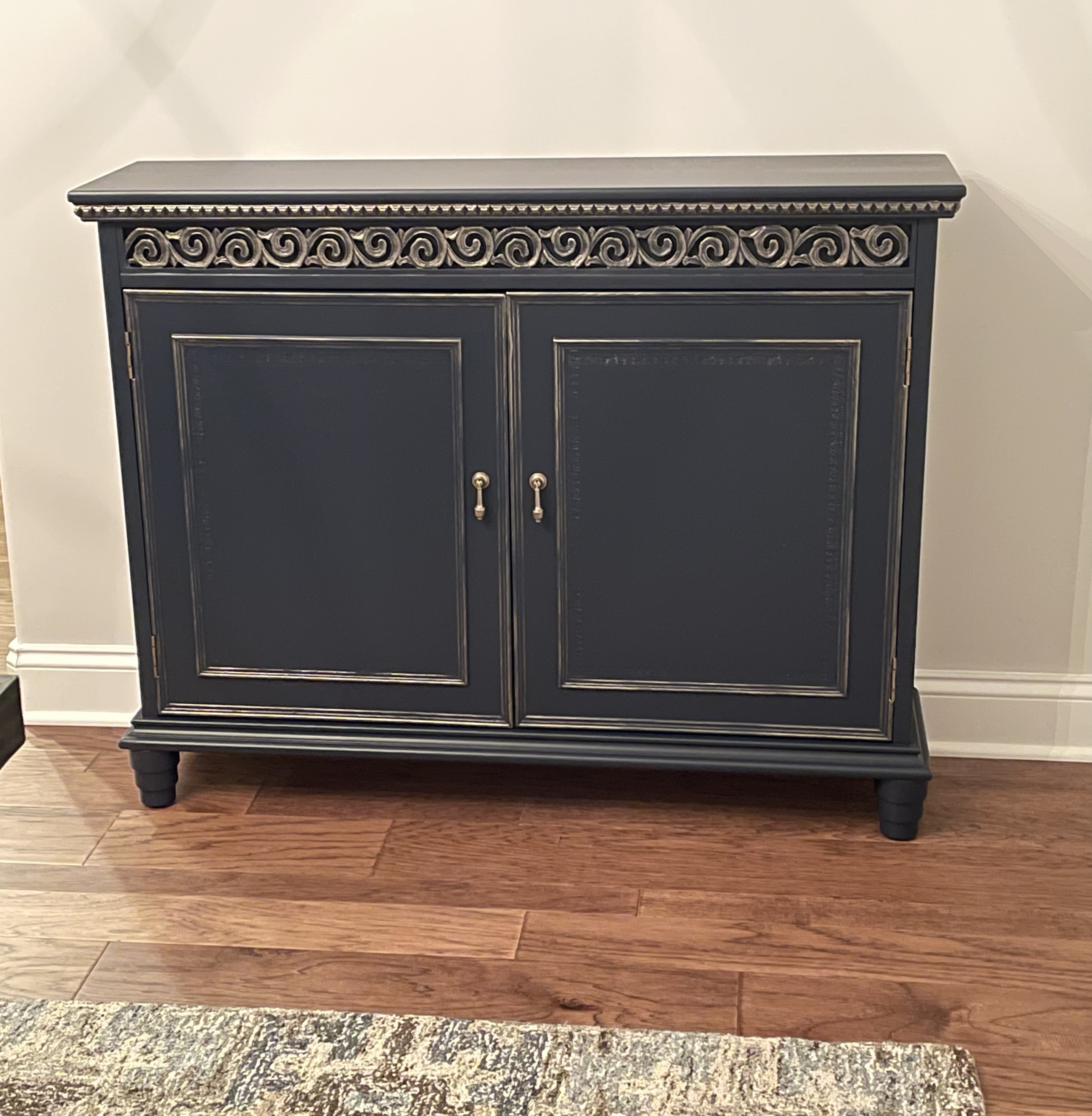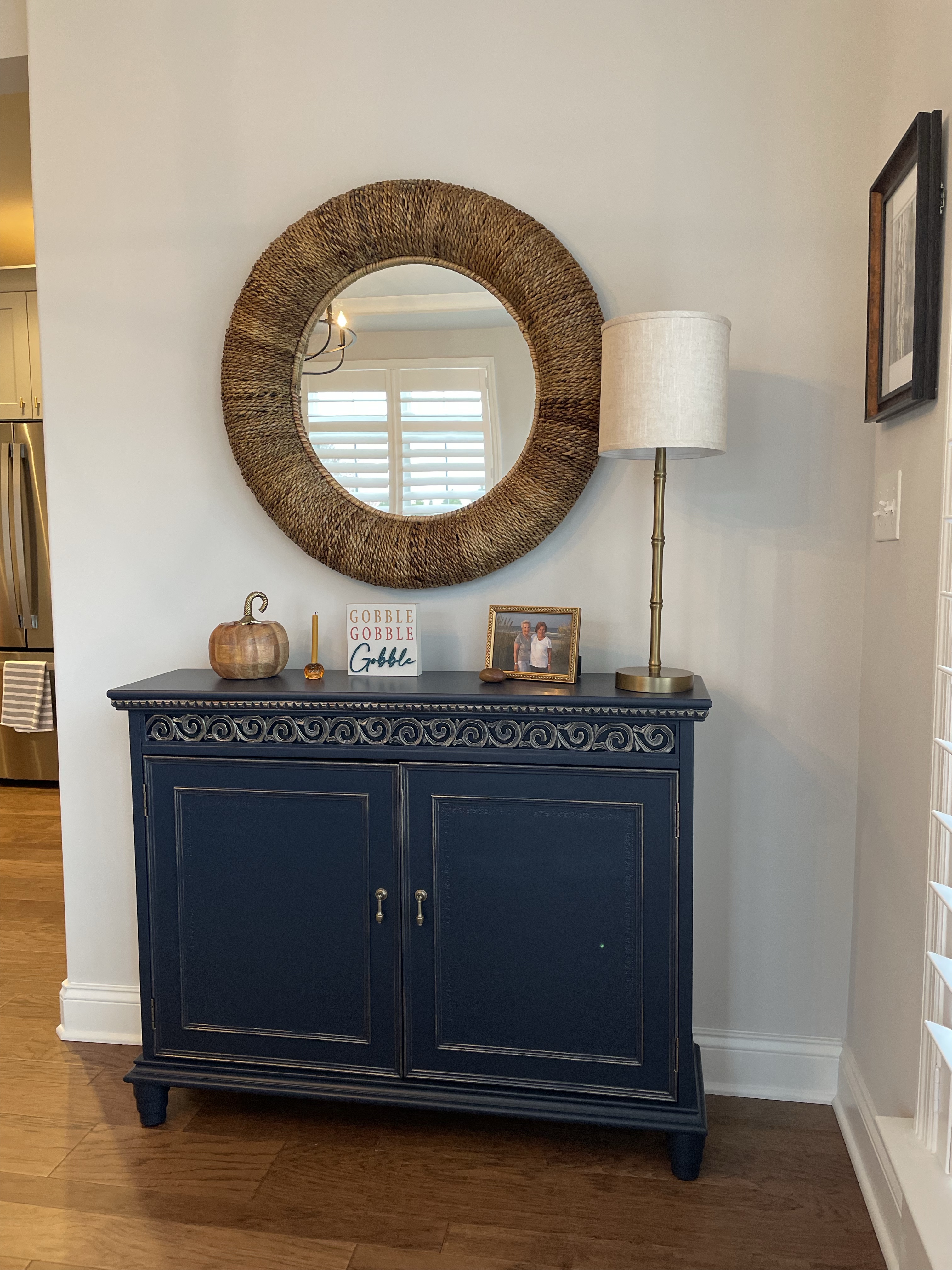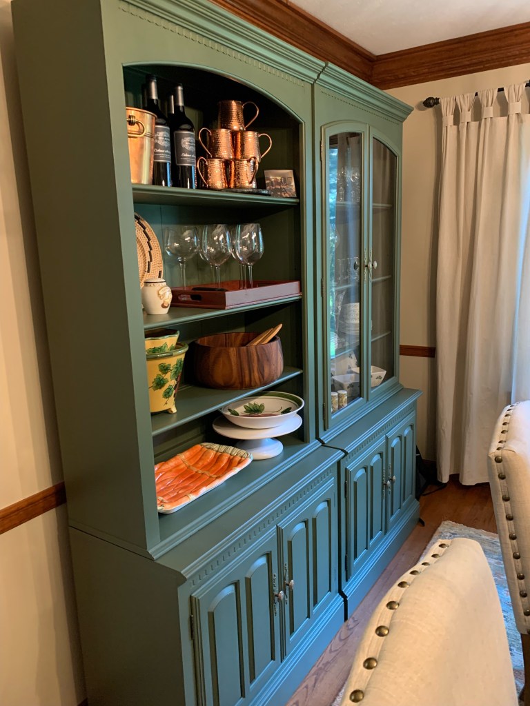 So thankful for this email from Cassy and her appreciation of my work and time spent painting her family room storage piece, antique dining hutch and mirror: